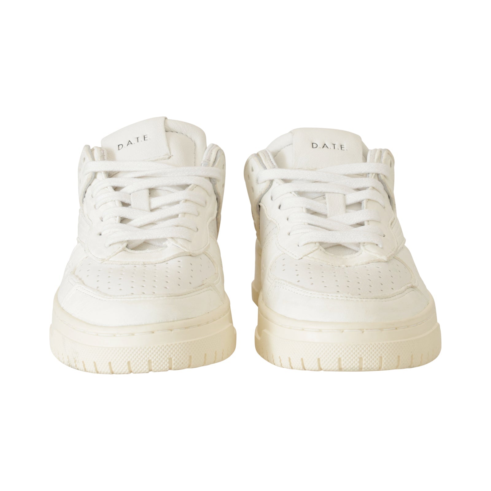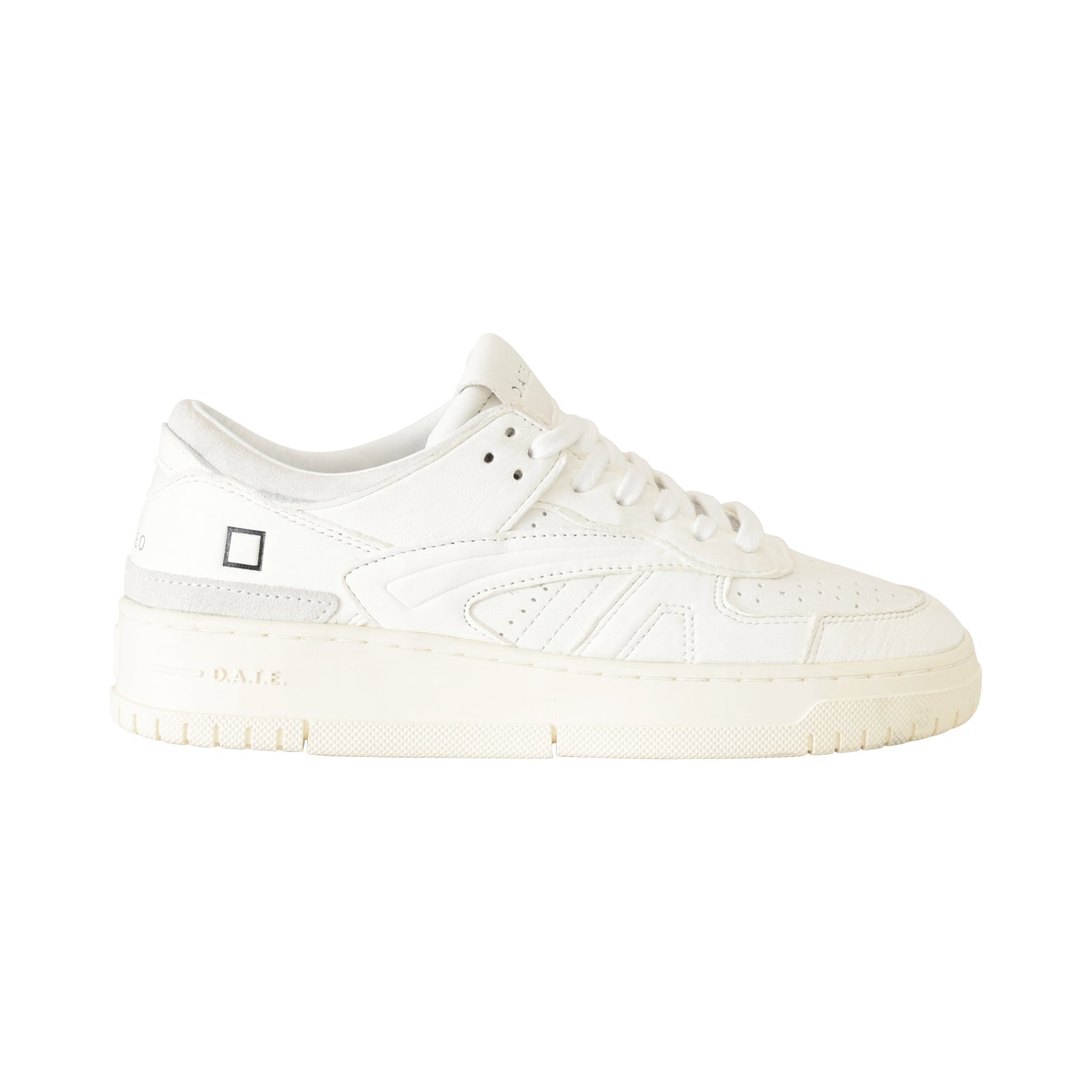 Sneakers TORNEO bianca di DATE in pelle con profili in camoscio ghiaccio, punta microforata e fondo in gomma.