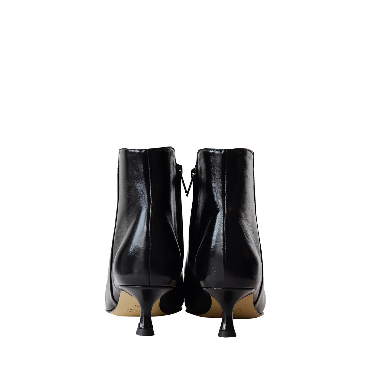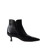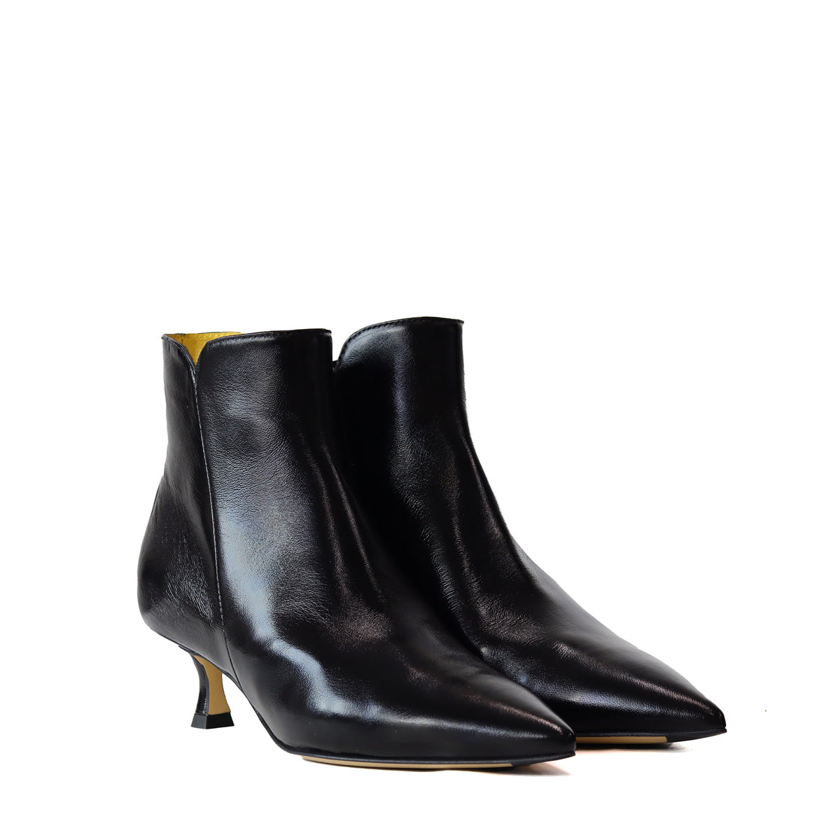 Stivaletto nero di MARA BINI in pelle con forma appuntita, zip interna, tacco 50mm e fondo in cuoio con gomma.