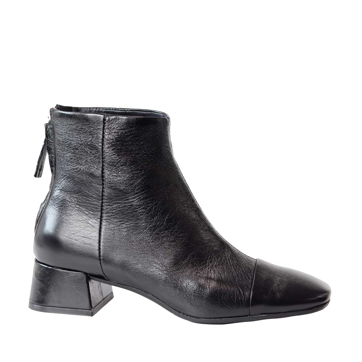 Stivaletto ROSEBACK nero di CARMENS in vernice con punta leggermente quadrata, zip posteriore. Tacco 30mm, fondo in gomma.