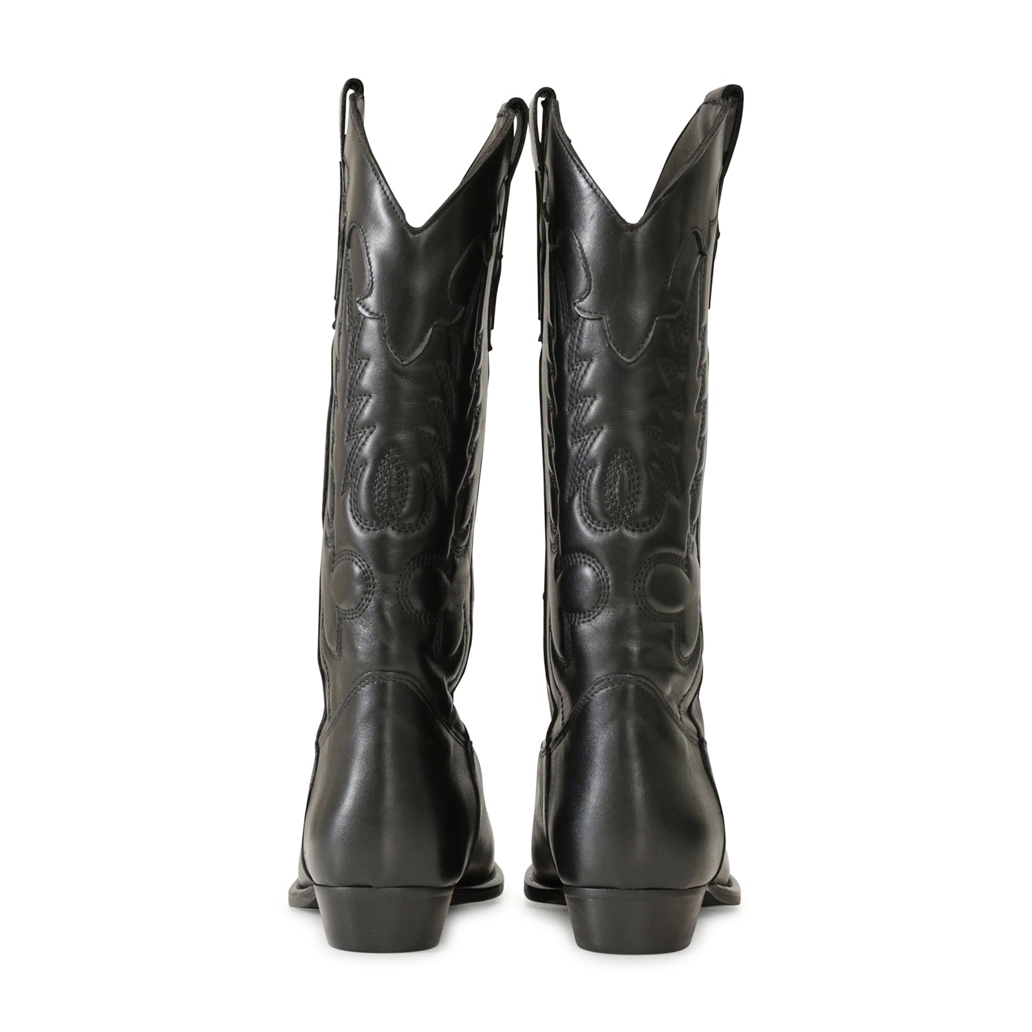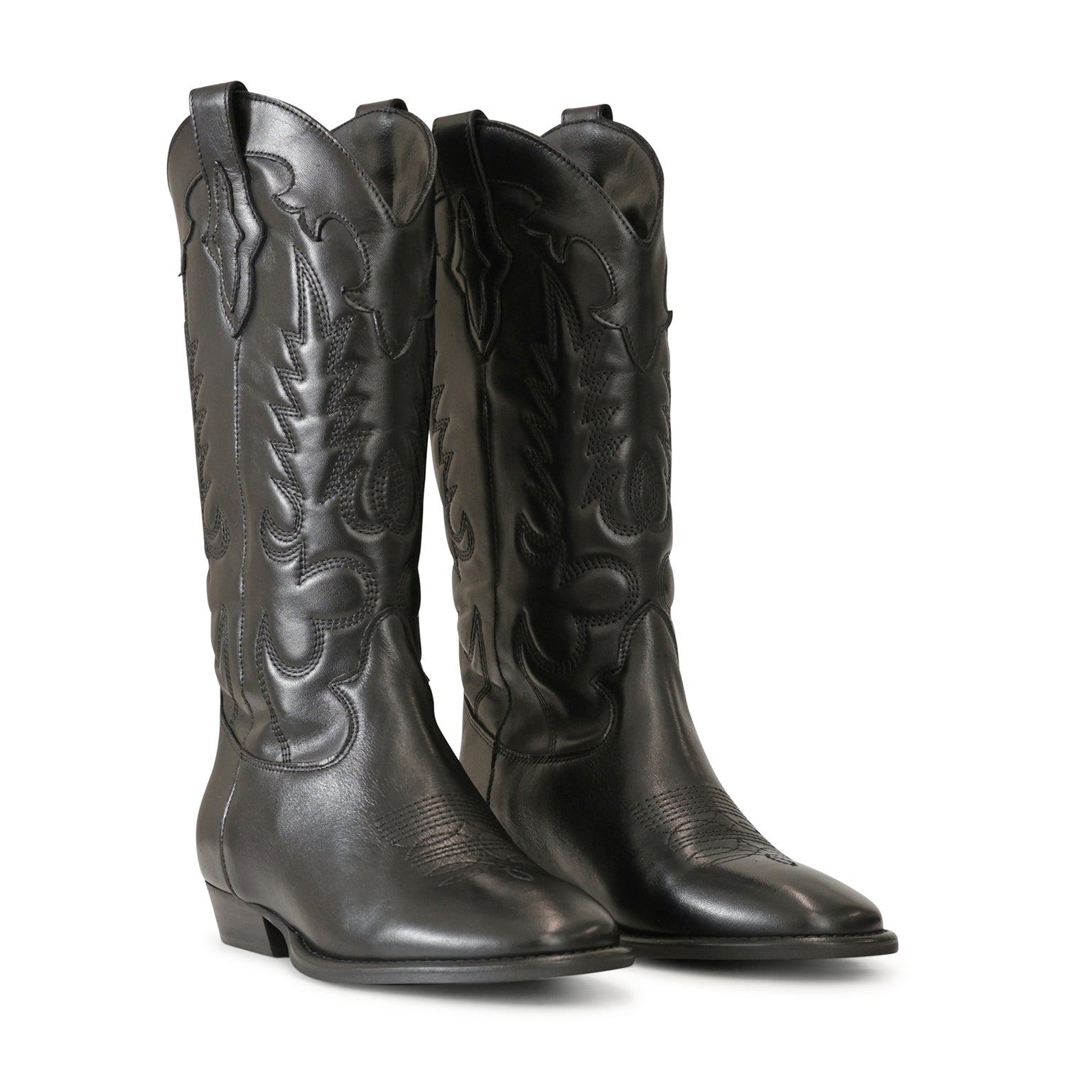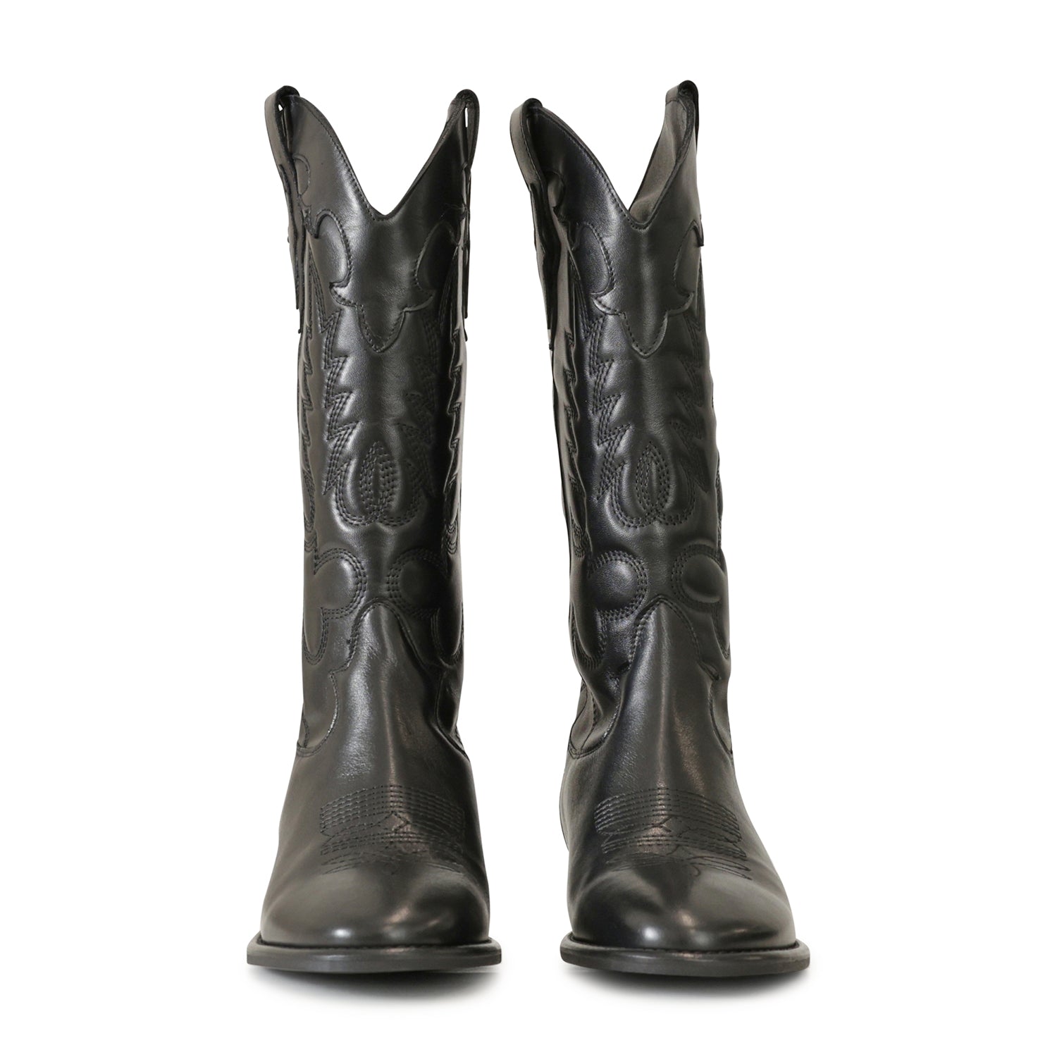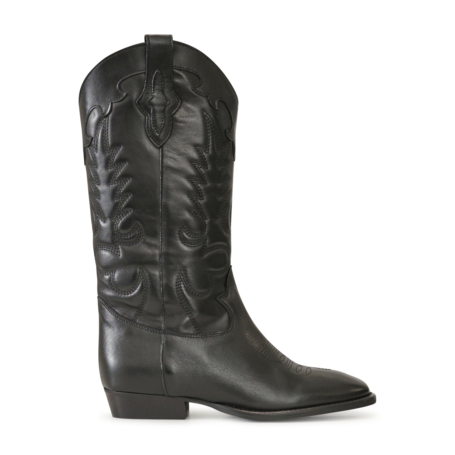 Texano GUATEMALA nero di GISEL MOIRE in pelle con tacco 20mm, ricamo in tinta su tomaia e su gambale.