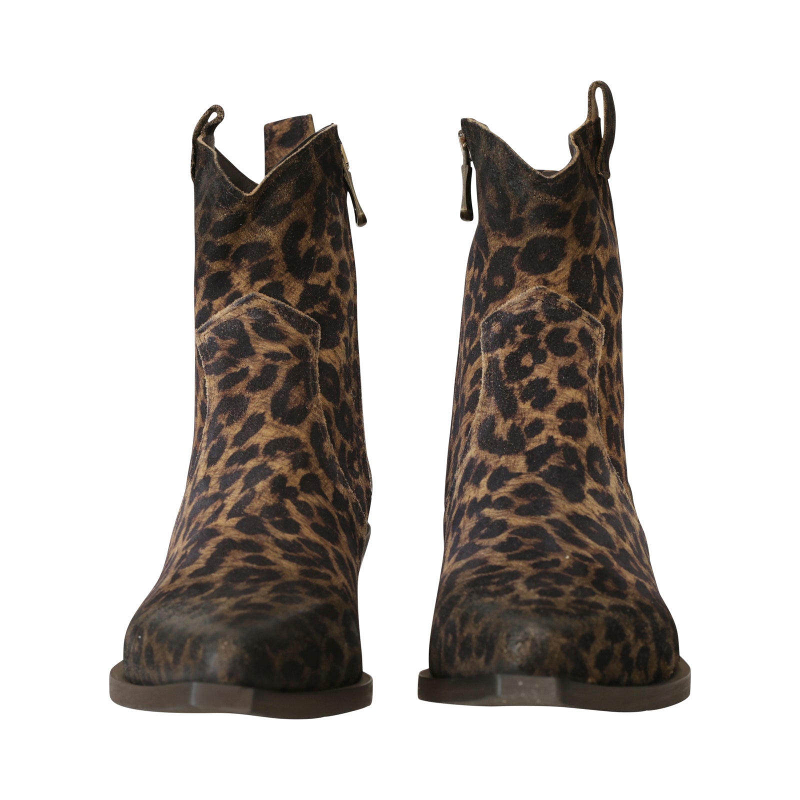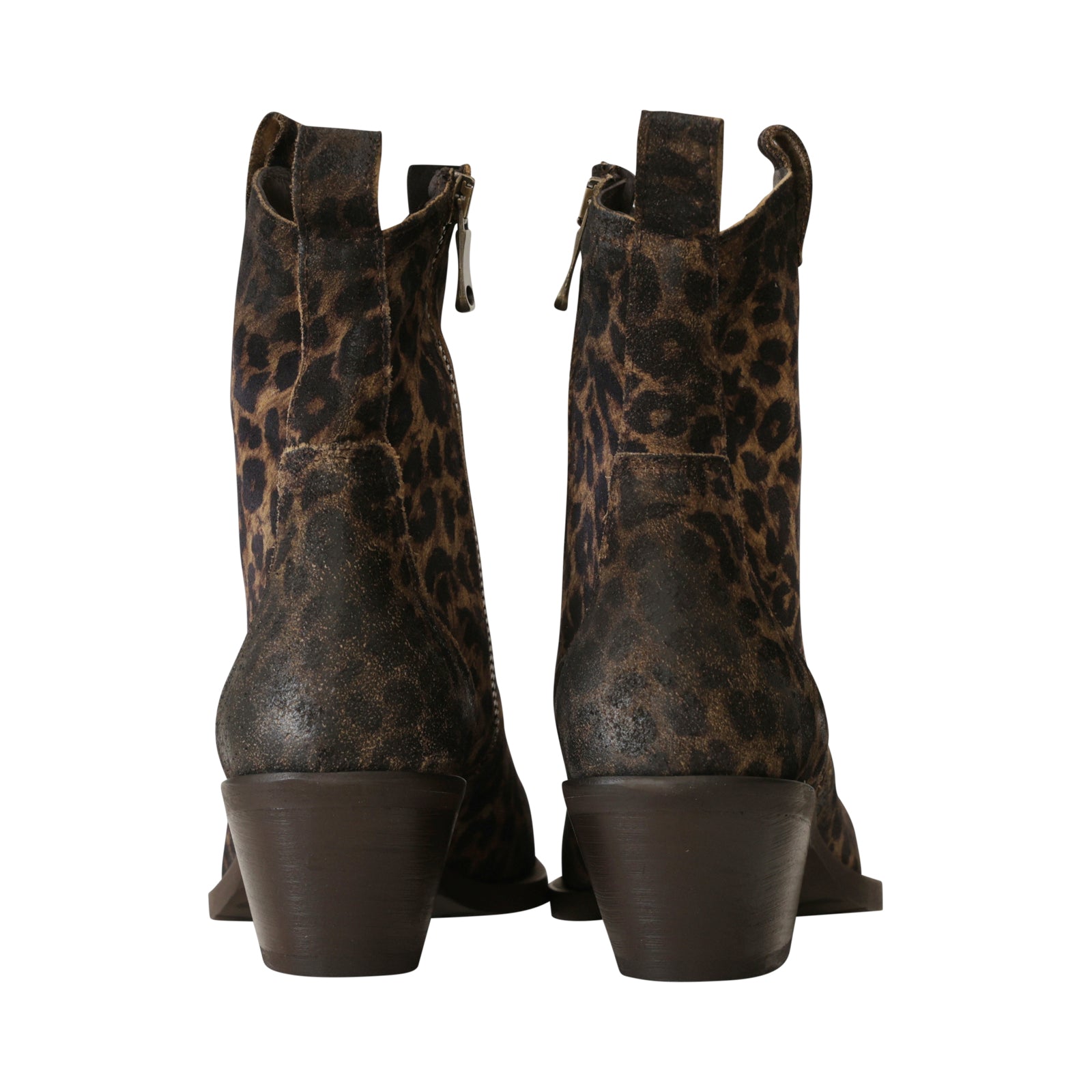 Texano leopardato di METISSE in pelle con zip interna, punta sfumata, tacco 30mm.