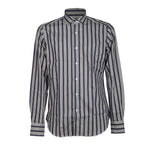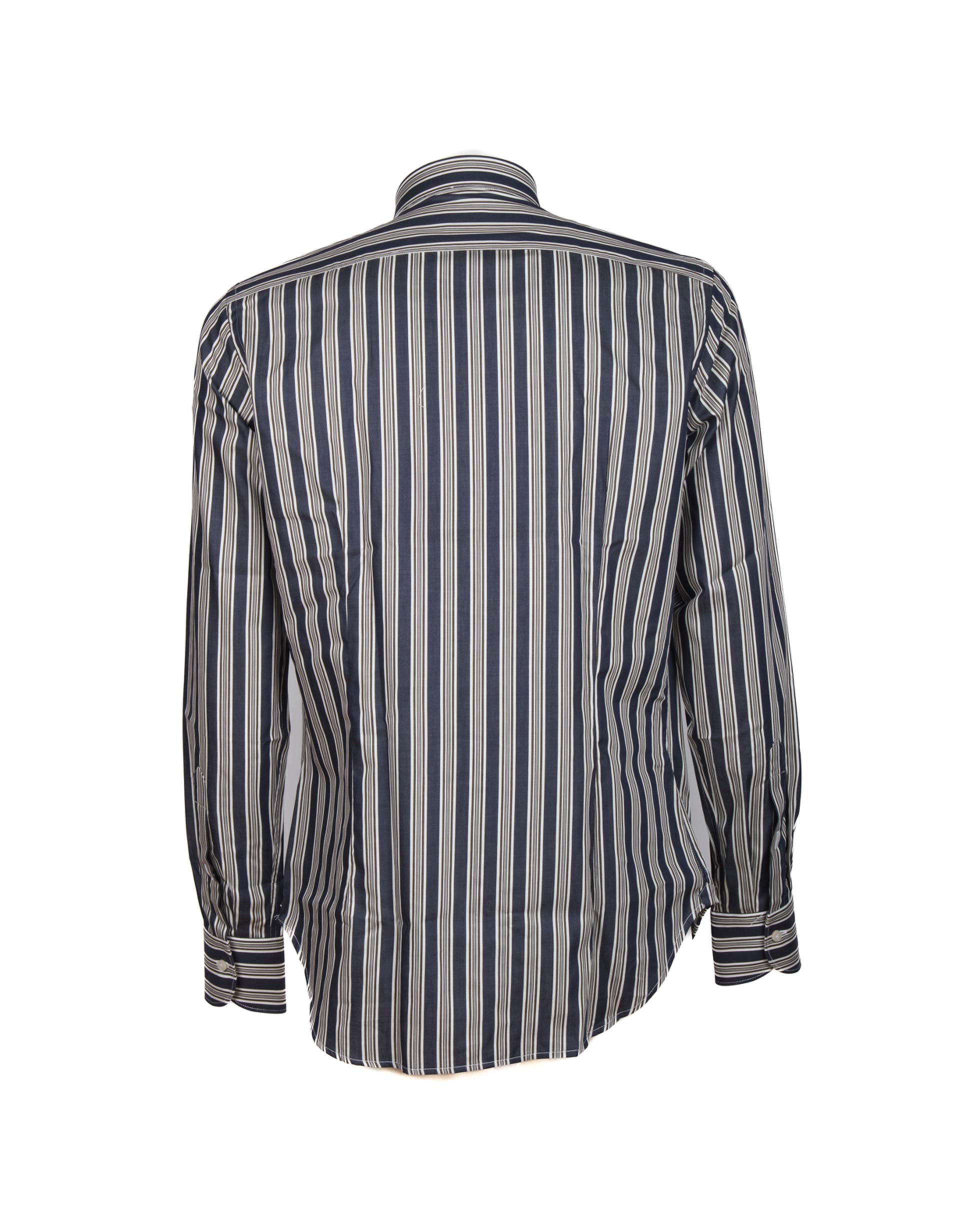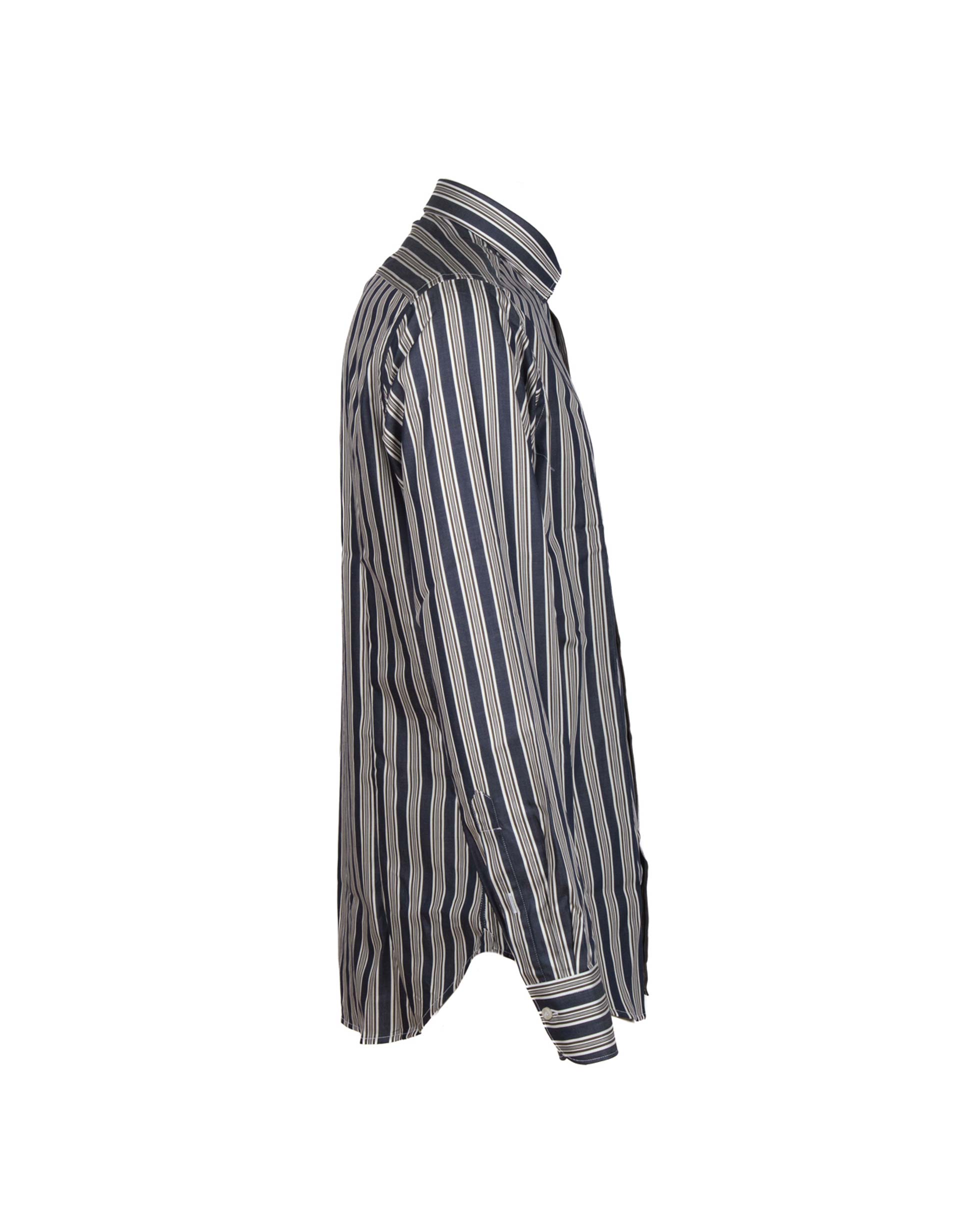 Camicia Slim Gio' di BRANCACCIO in cotone doppia riga blu e moro. Made in Italy.