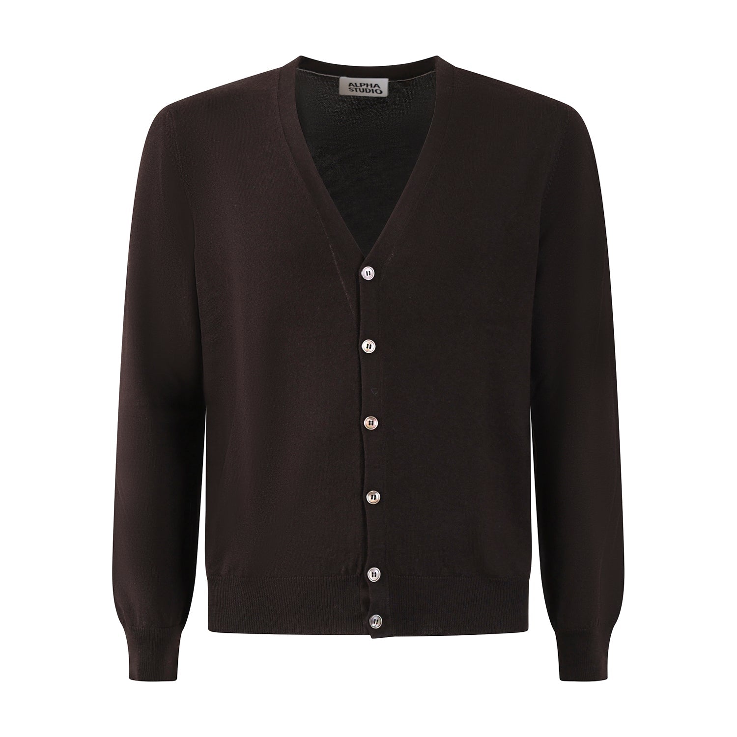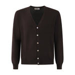 Cardigan marrone di GRAN SASSO X FEDELE in lana merinos con chiusura con bottoni, bordi e polsi a costine.