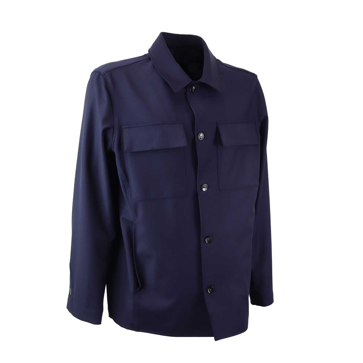 Field jacket JAMES blu di MICHAEL COAL in lana rasata con collo camicia, chiusura con bottoni, tasche applicate con chiusura a patta.