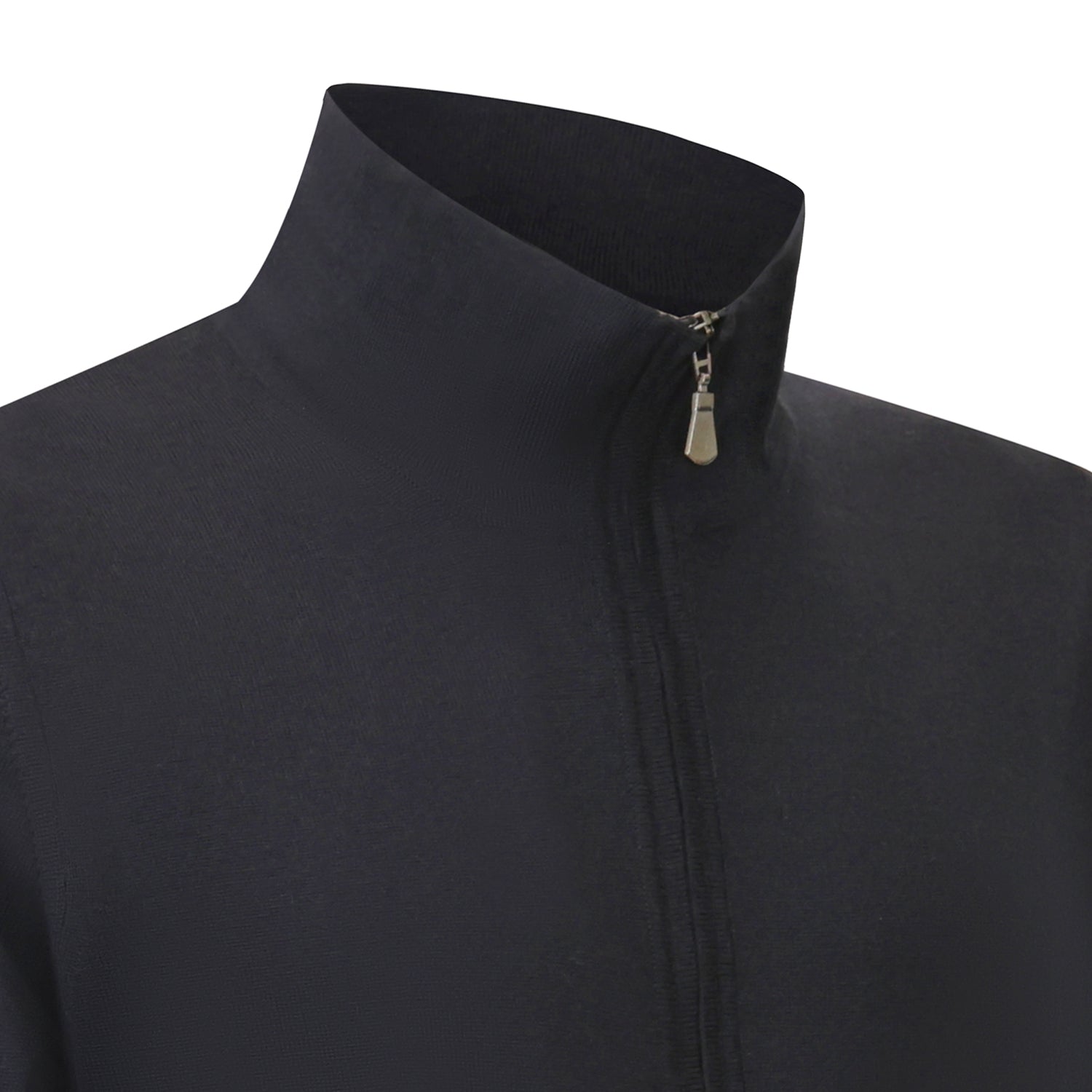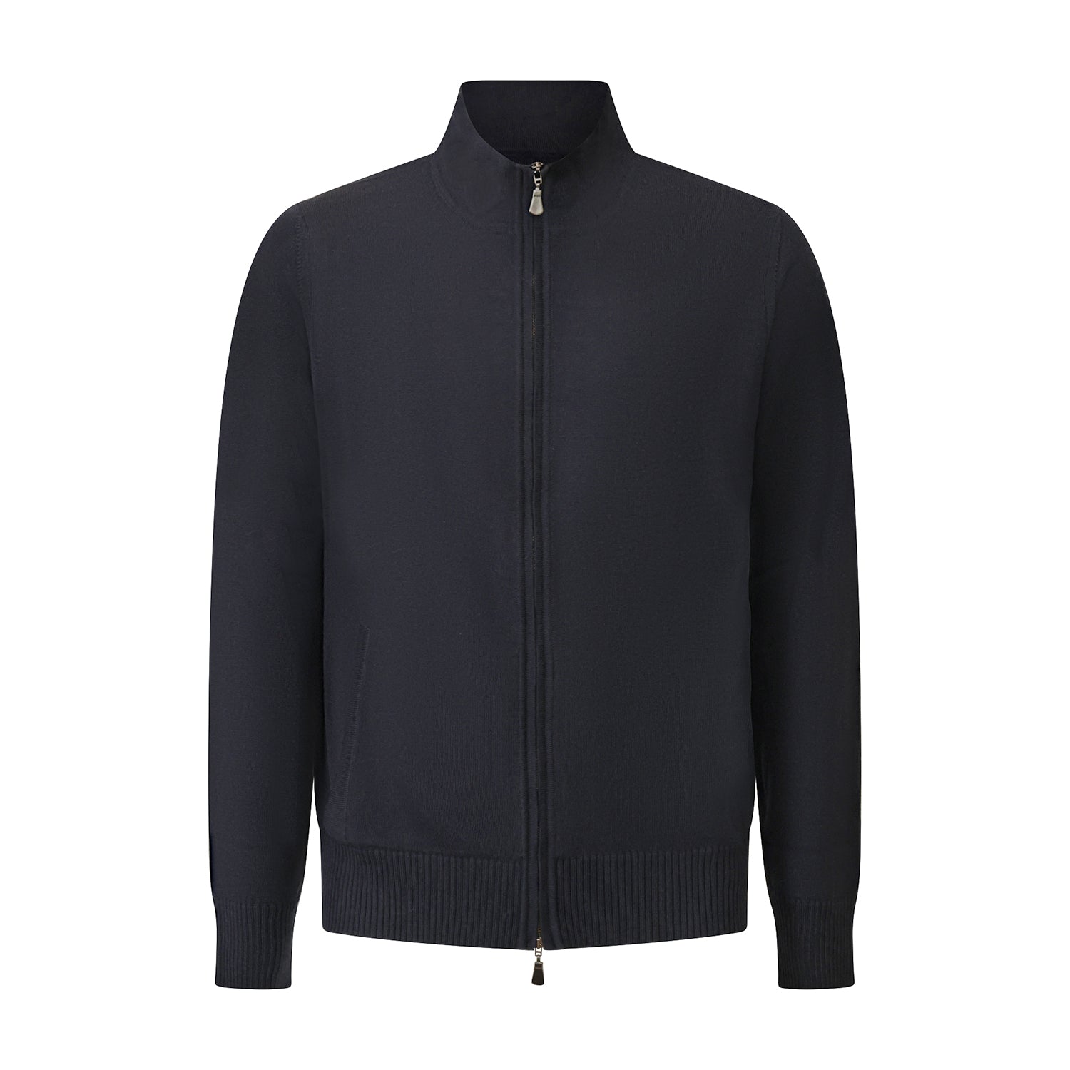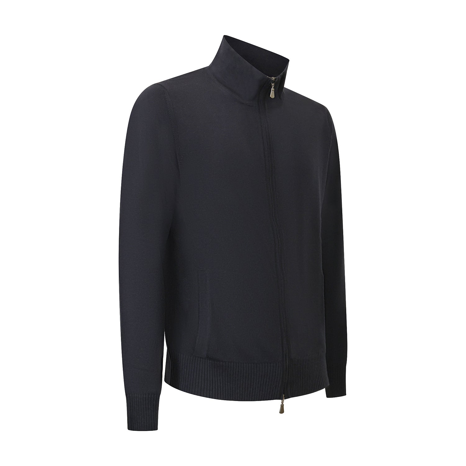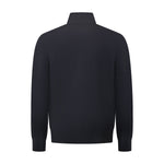 Maglia blouson blu di ALPHA STUDIO in lana merinos con chiusura con zip, tasche a filetto, bordi e polsini a coste.