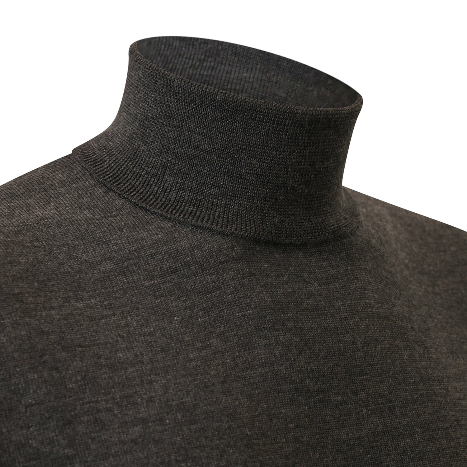 Maglia grigia di GRAN SASSO X FEDELE in lana merinos con collo ciclista, bordi e polsi a costine.
