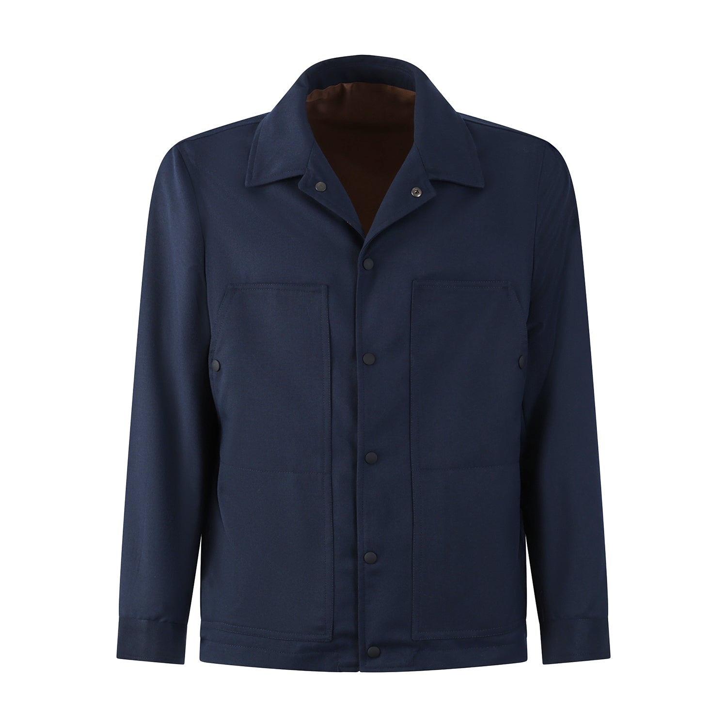 Overshirt blu di OUTFIT in misto lana con chiusura con bottoni, collo camicia, 4 tasche a filetto.