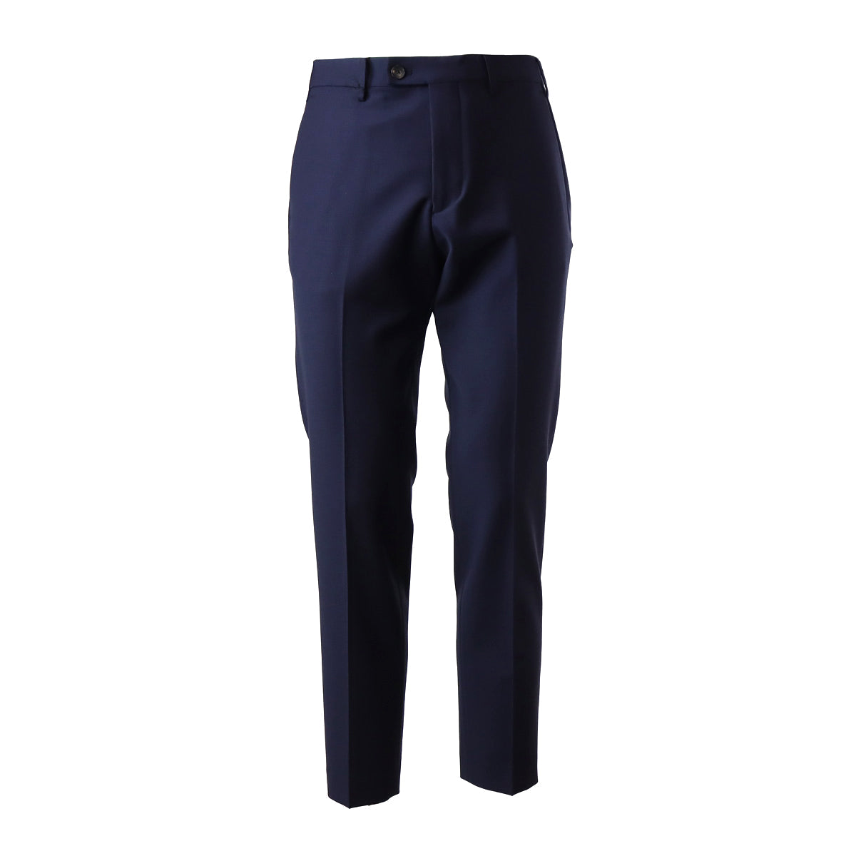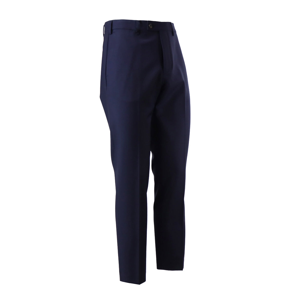 Pantalone BRAD 1+ blu di MICHAEL COAL in lana rasata con ventre piatto, tasche america laterali, tasche a filetto posteriori, chiusura con bottone leggermente spostato e zip. Pantalone con brevetto ONE MORE SIZE con coulisse elasticizzata in vita per maggiore confort nella vestibilita'.