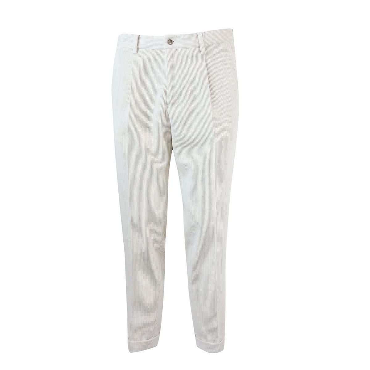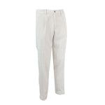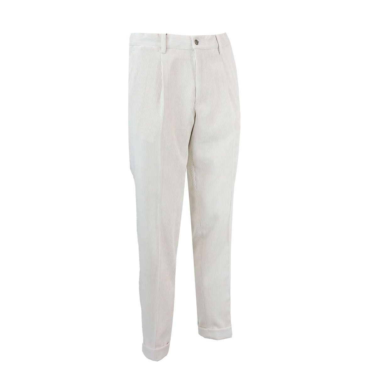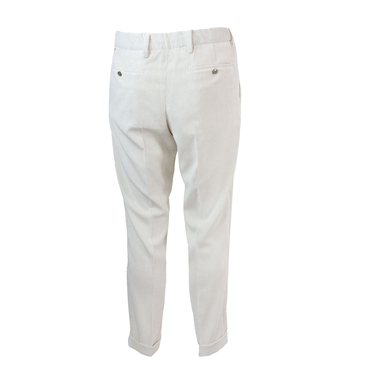 Pantalone ISOLA naturale di QUATTRODECIMI BRIGLIA in tessuto con effetto velluto a coste, una pence, tasche anteriori a filetto, tasche posteriori a filetto con bottone.