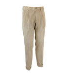 Pantalone ISOLA verde di QUATTRODECIMI BRIGLIA in tessuto con effetto velluto a coste, una pence, tasche anteriori a filetto, tasche posteriori a filetto con bottone.
