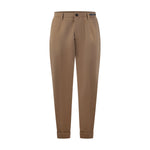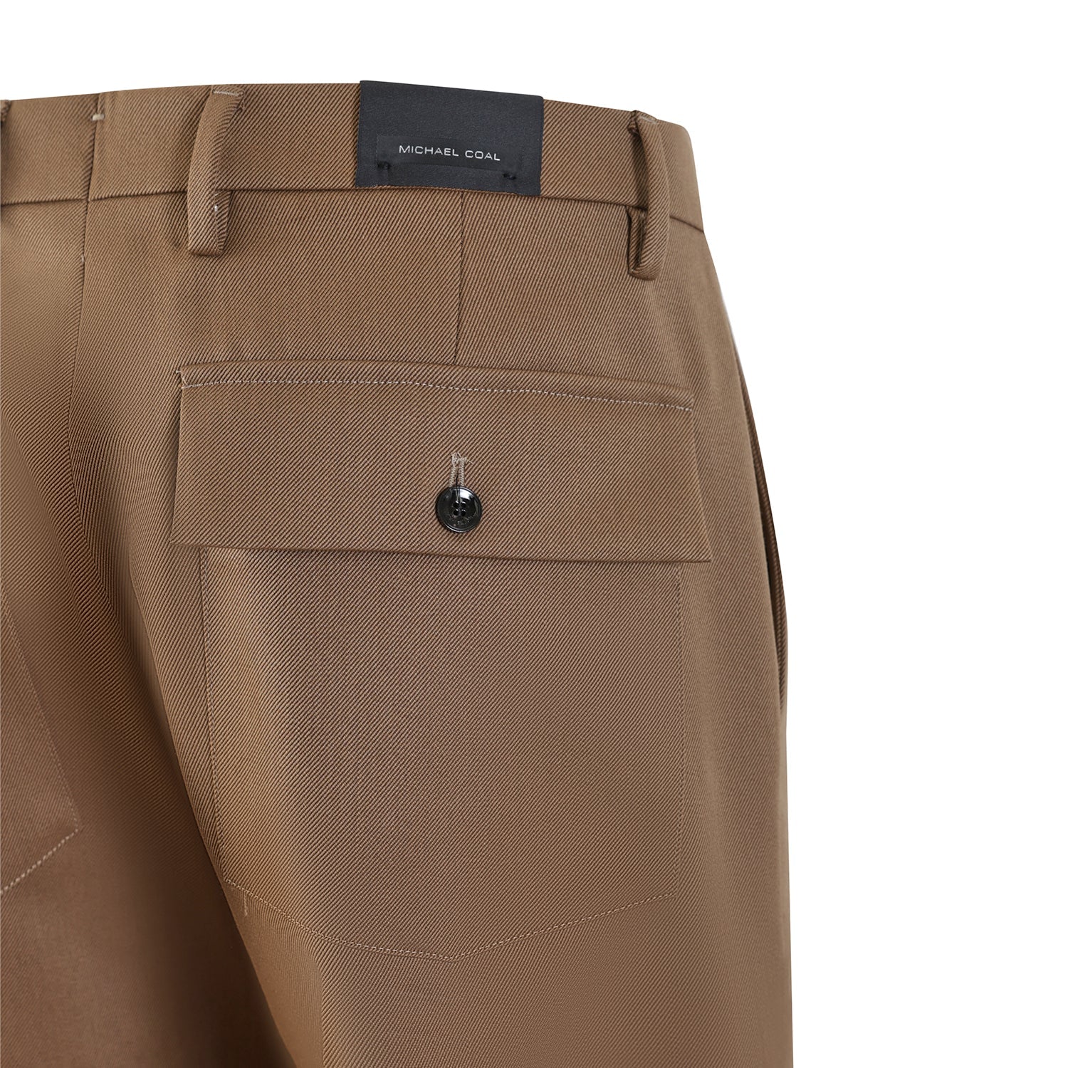 Pantalone LOUIS cammello di MICHAEL COAL in lana con chiusura con zip e bottone, modello tasca america e tasche posteriori con patte.