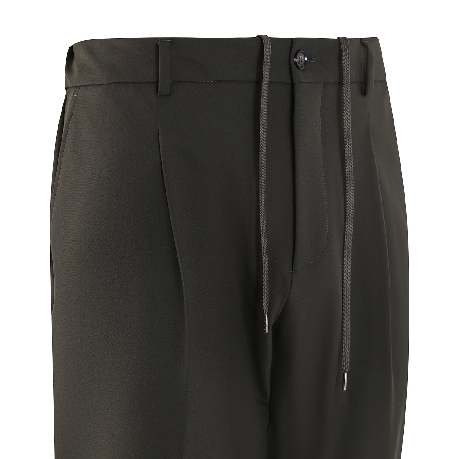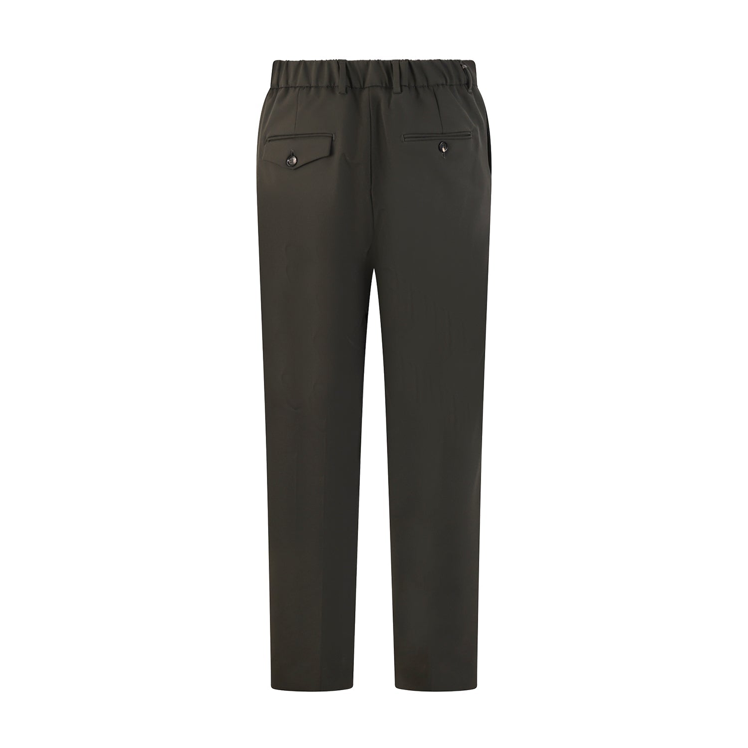 Pantalone NEW RICCARDO verde di BE ABLE in lana tecnica con chiusura con zip nascosta e bottone, lacci e coulisse in vita, una pence. Modello tasca america con tasche posteriori una con patta e una a filetto. Larghezza fondo base 16cm.