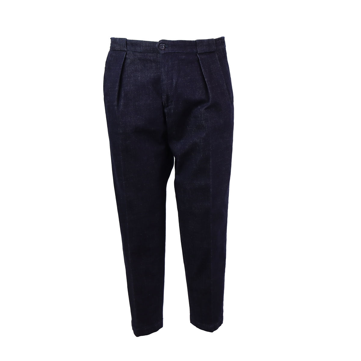 Pantalone PORTOBELLO denim di QUATTRODECIMI BRIGLIA in cotone con una pence, chiusura con zip nascosta e bottone, tasche anteriori a filetto, tasche posteriori a filetto con bottone e coulisse in vita laterale. Japan Fit