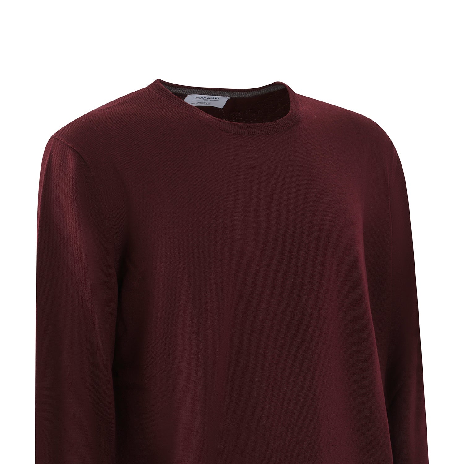 Paricollo bordeaux di GRAN SASSO X FEDELE in lana merinos con bordi e polsi a costine.