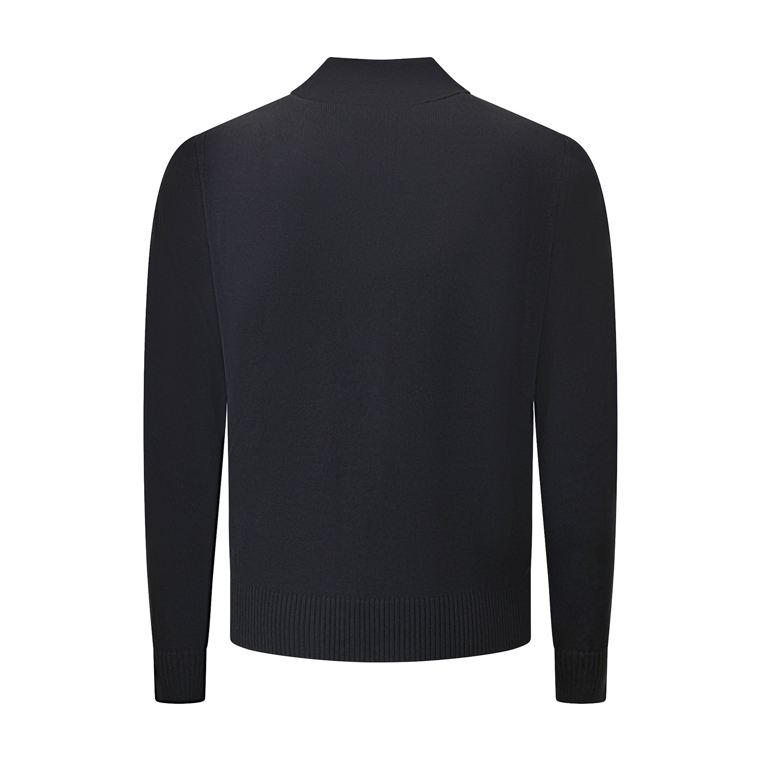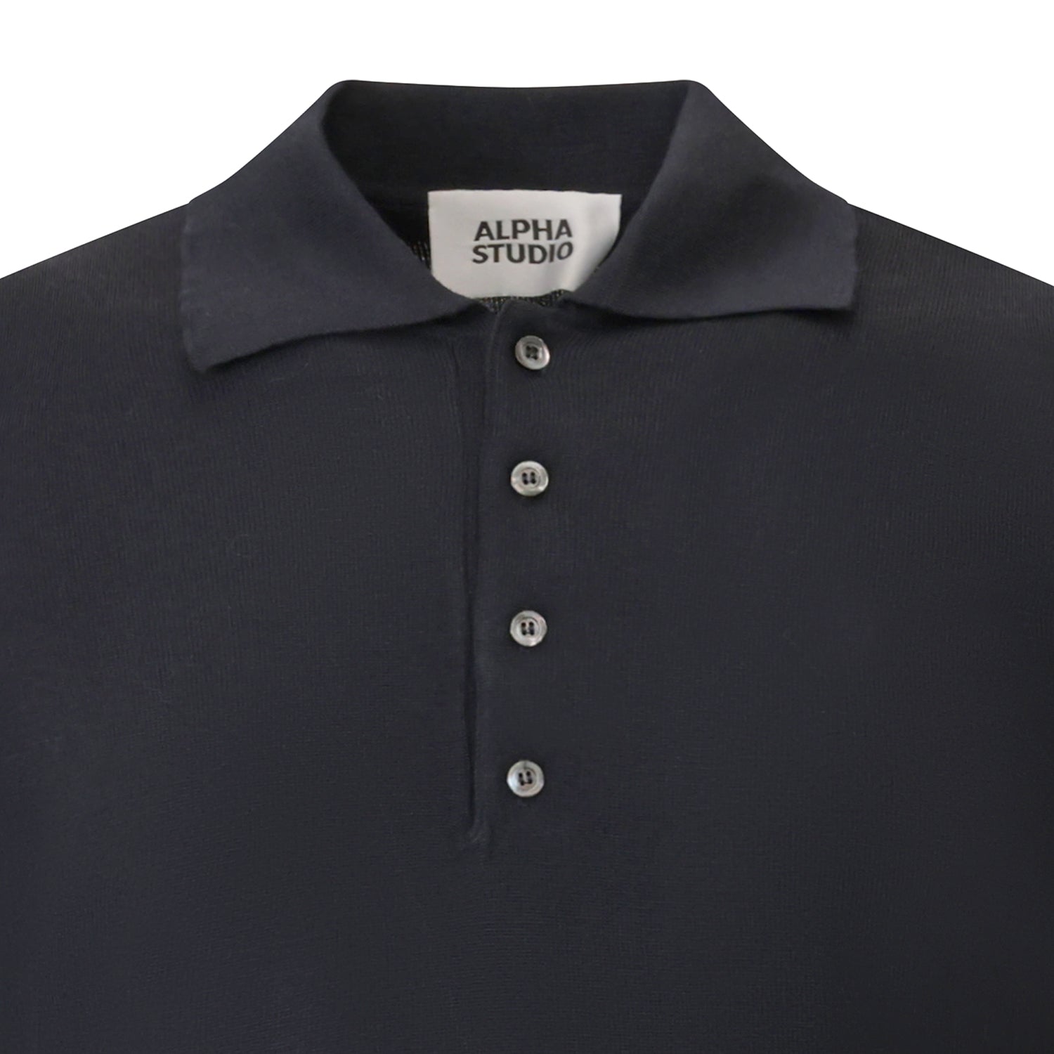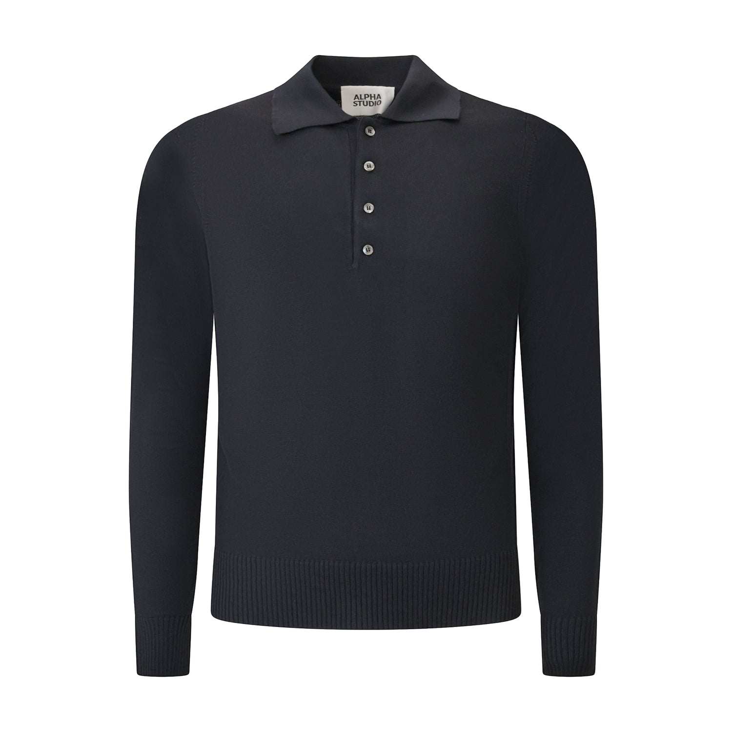 Polo blu di ALPHA STUDIO in lana merinos con collo camicia e 4 bottoni, bordi e polsini a costine.