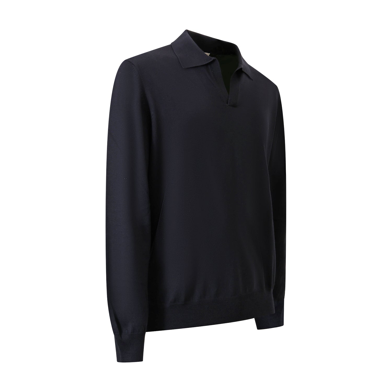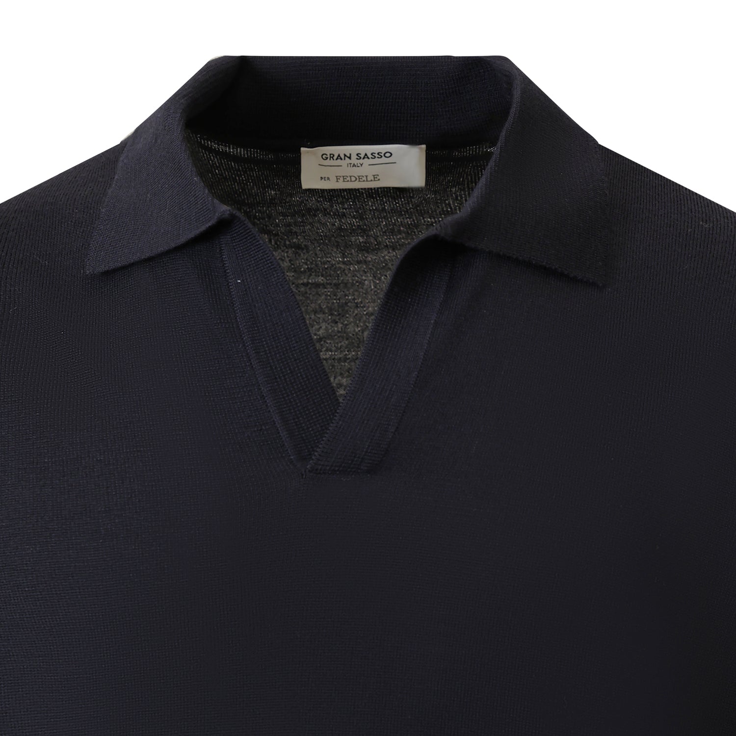 Skipper blu di GRAN SASSO X FEDELE in lana merinos con lavorazione ATHLEISURE e collo camicia.