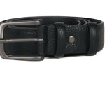 Cintura nera di JOHN RICHMOND in pelle effetto bottalato con fibbia in acciaio.