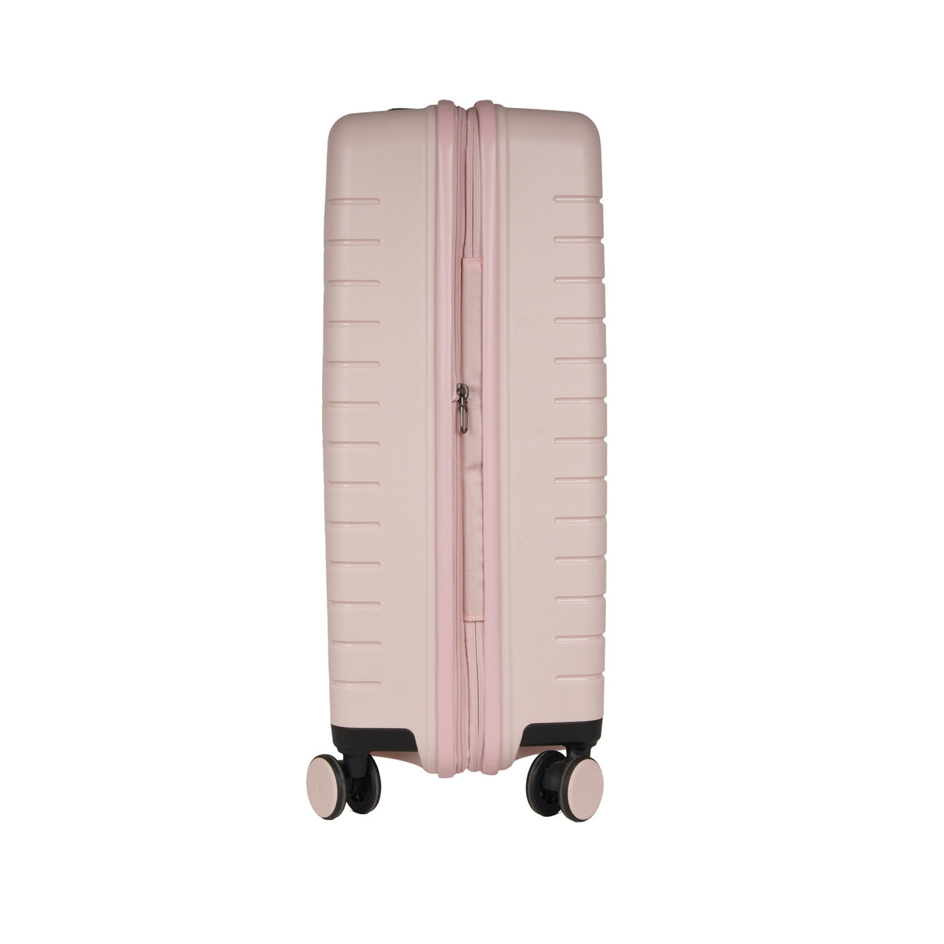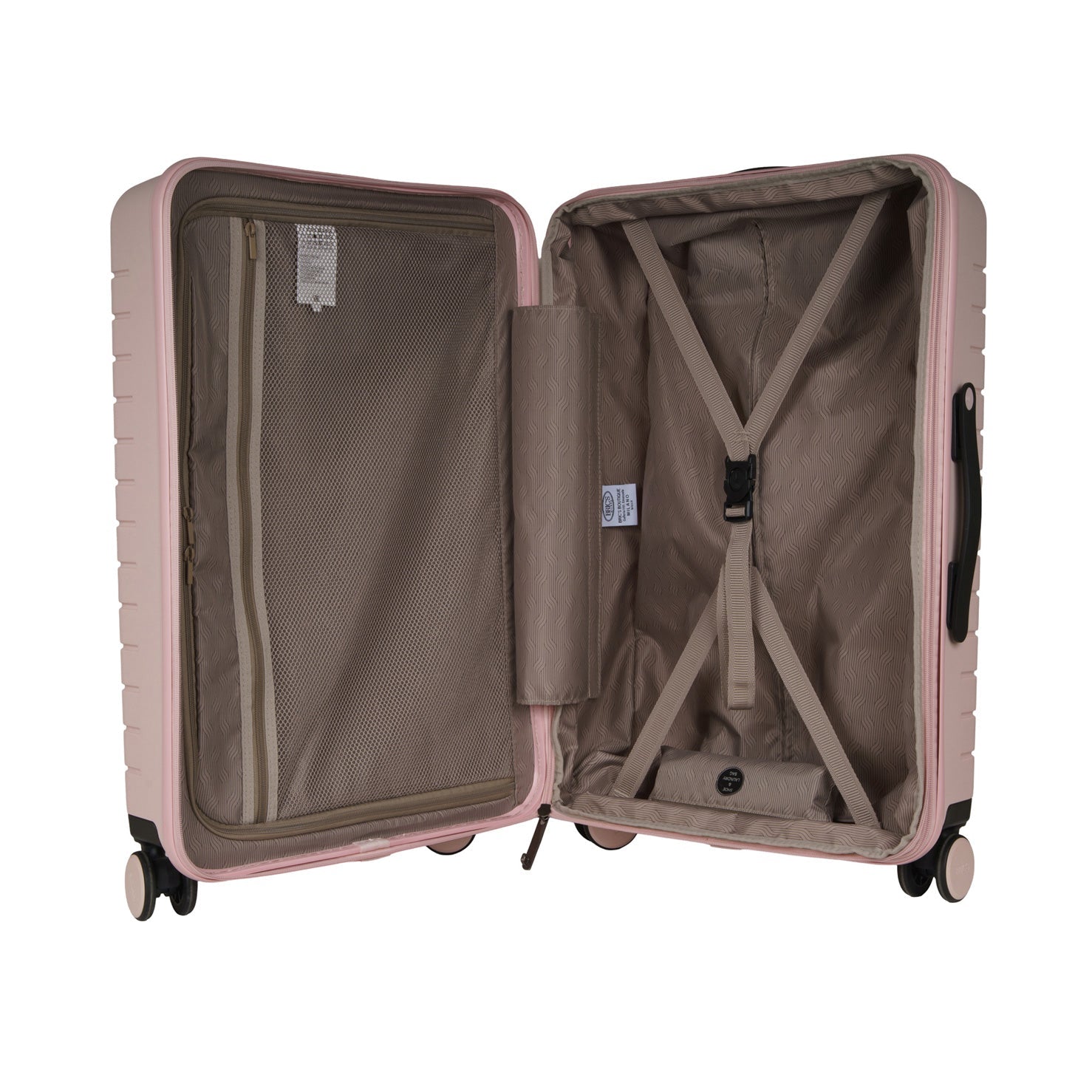 Cabin trolley medio rigido rosa di BRICS in polipropilene con doppia chiusura a zip estendibile con dettaglio logo del brand. Blocco con codice. Divisore con taschino con rete e taschino centrale con zip. Misure 43x65x26 cm.