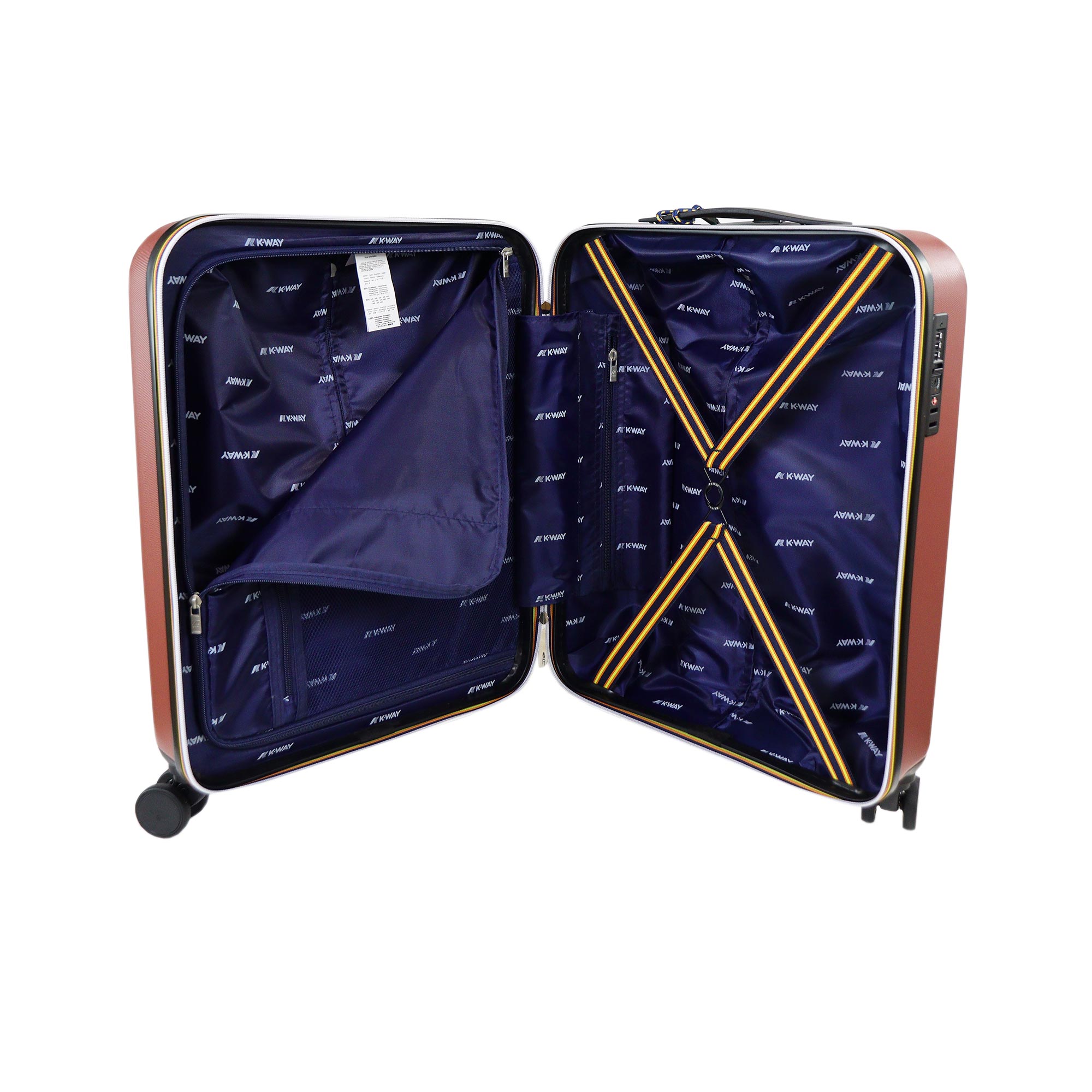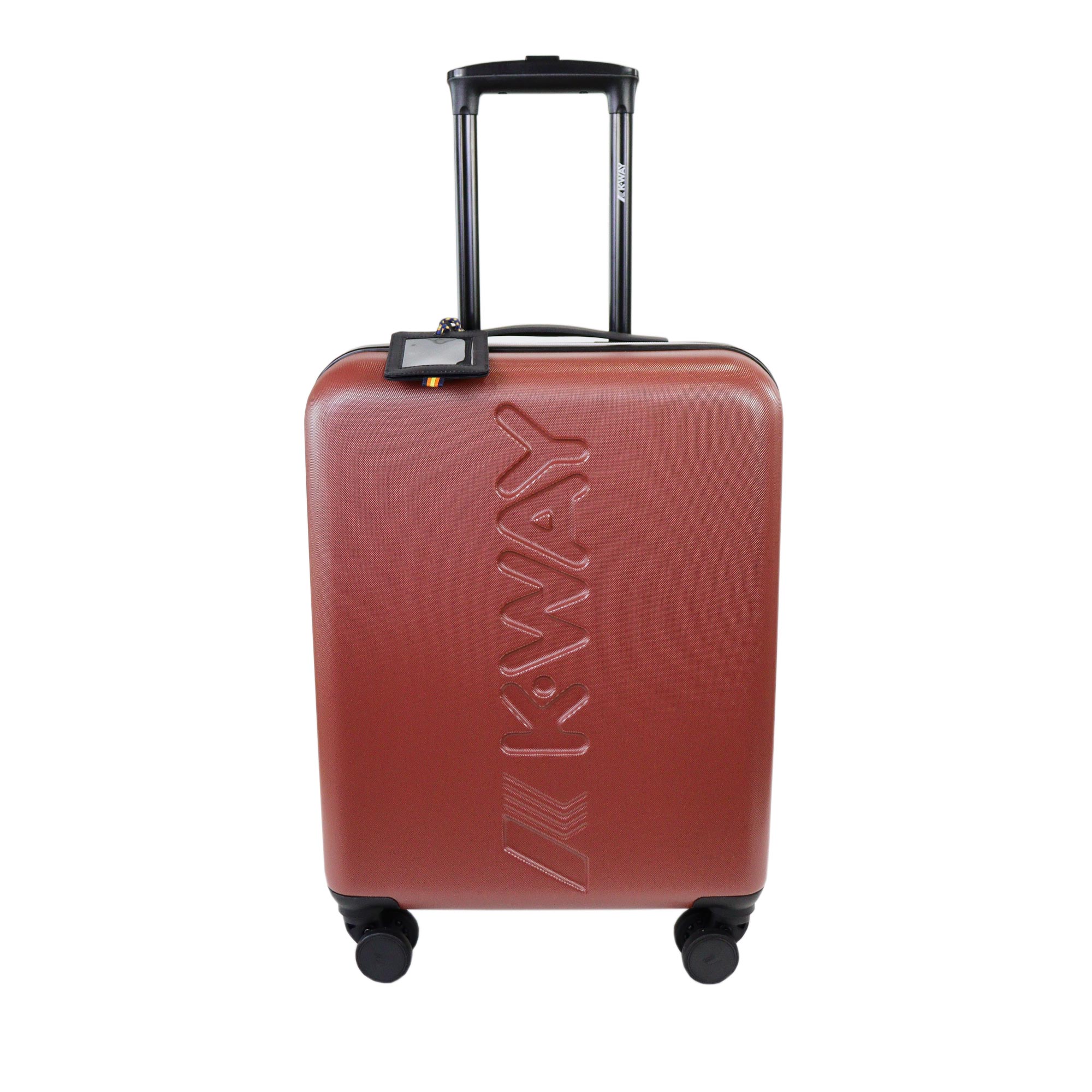 Cabin trolley piccolo bordeaux di K-WAY in misto policarbonato e abs con chiusura a zip con dettaglio scritta del brand con codice. Divisore con taschino con rete e taschino centrale con zip. Misure 40x55x20