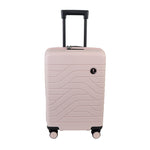 Cabin trolley piccolo rigido rosa di BRICS in polipropilene con chiusura a zip con dettaglio logo del brand. Blocco con codice e ricarica usb. Divisore con taschino con rete e taschino centrale con zip. Misure 37x55x20 cm.