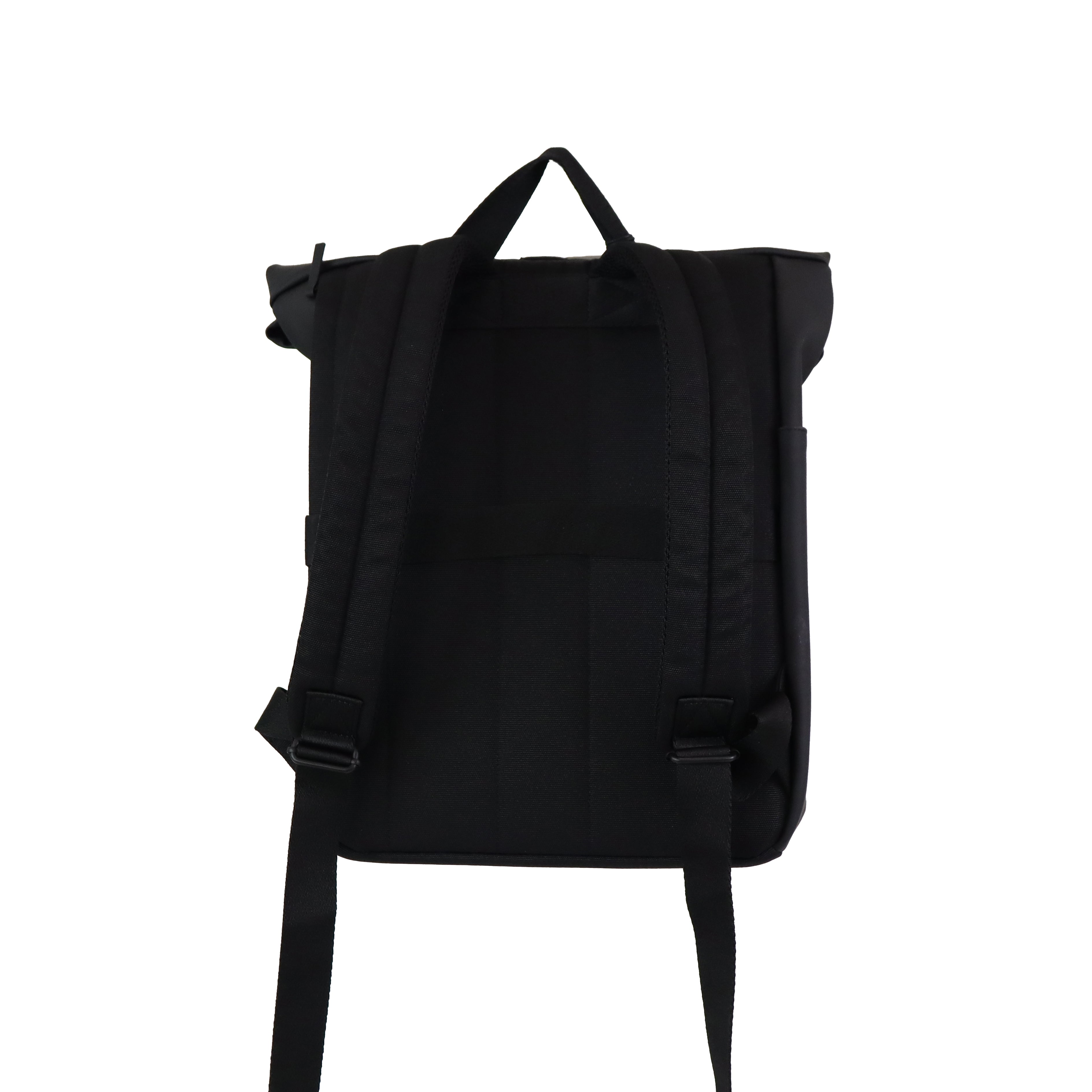 Zaino HAJO MINI nero di UCON ACROBATICS in gommato con tasca frontale, chiusura con strappo, manico in tessuto e multi tasche interne. Misure 44x28x10cm.
