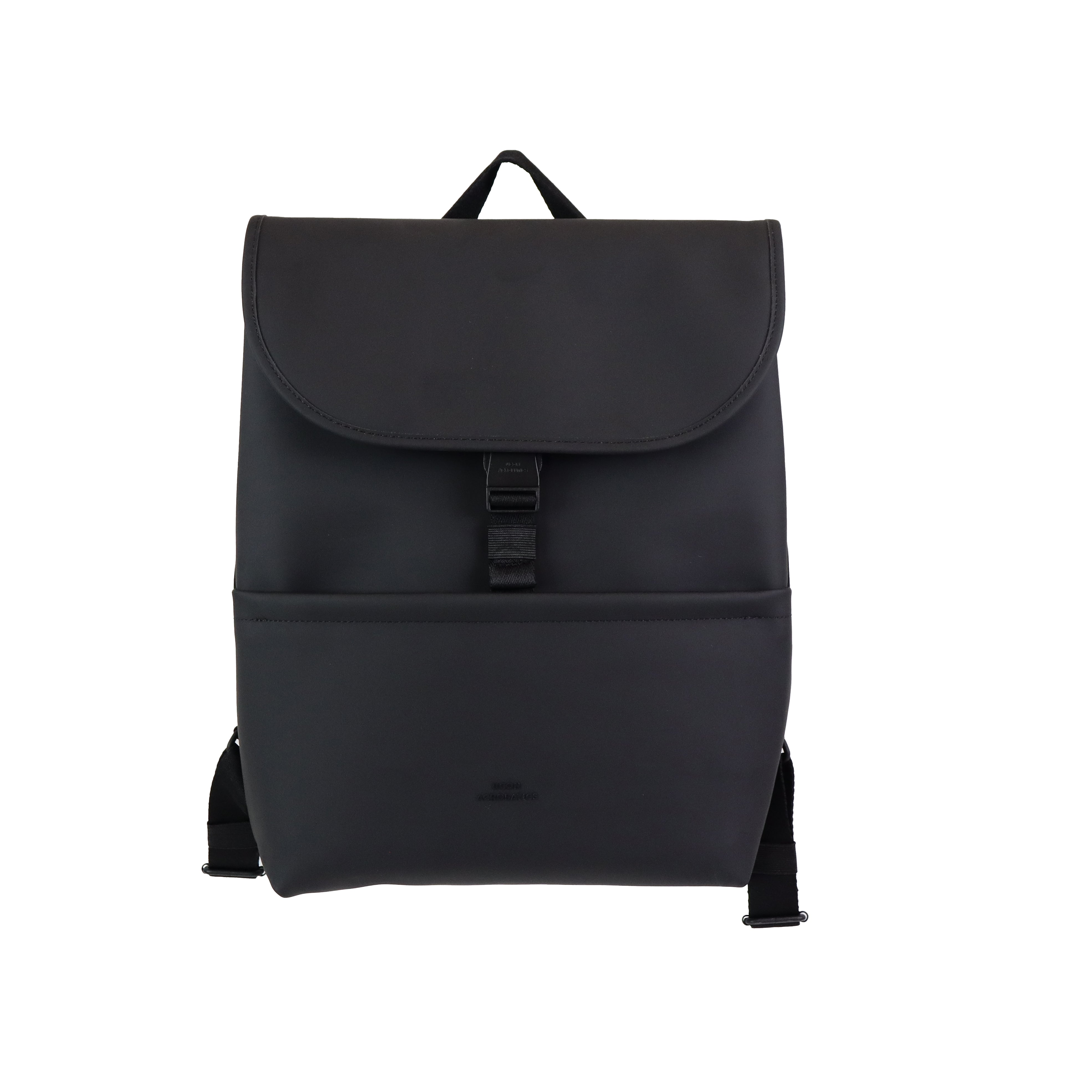 Zaino MION MINI nero di UCON ACROBATICS in gommato con tasca frontale, chiusura con clip, manico in tessuto e multi tasche interne. Misure 39x35x13cm.