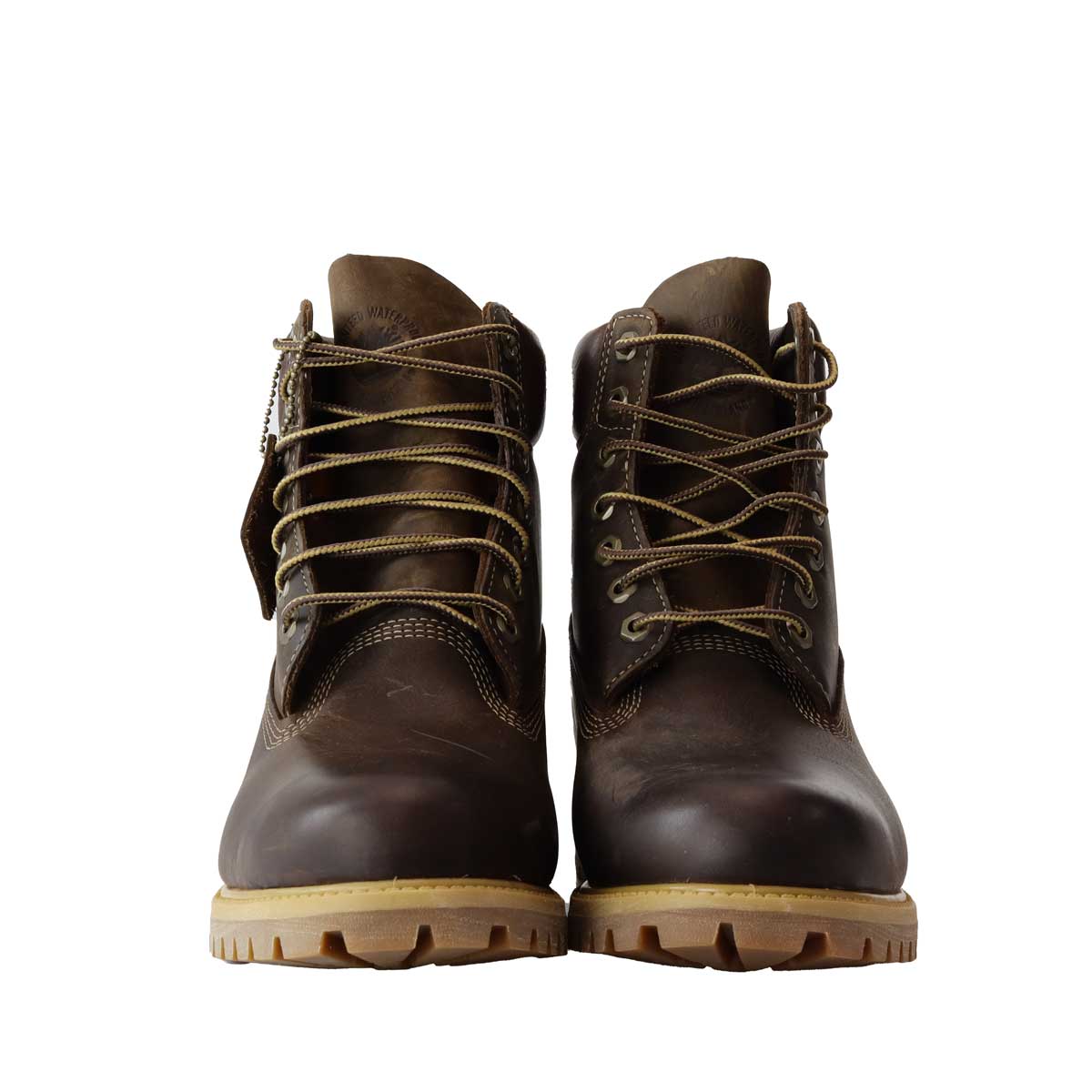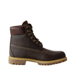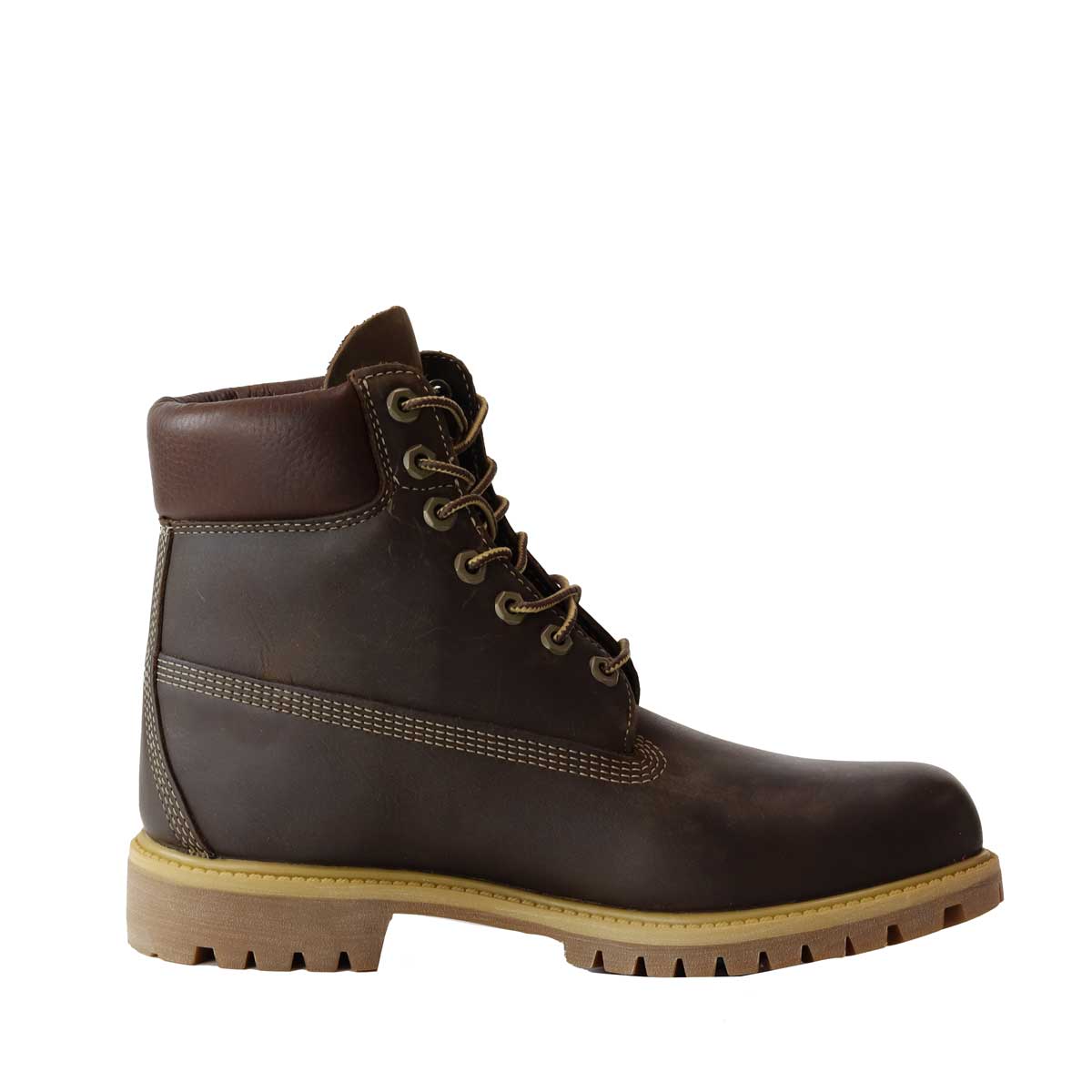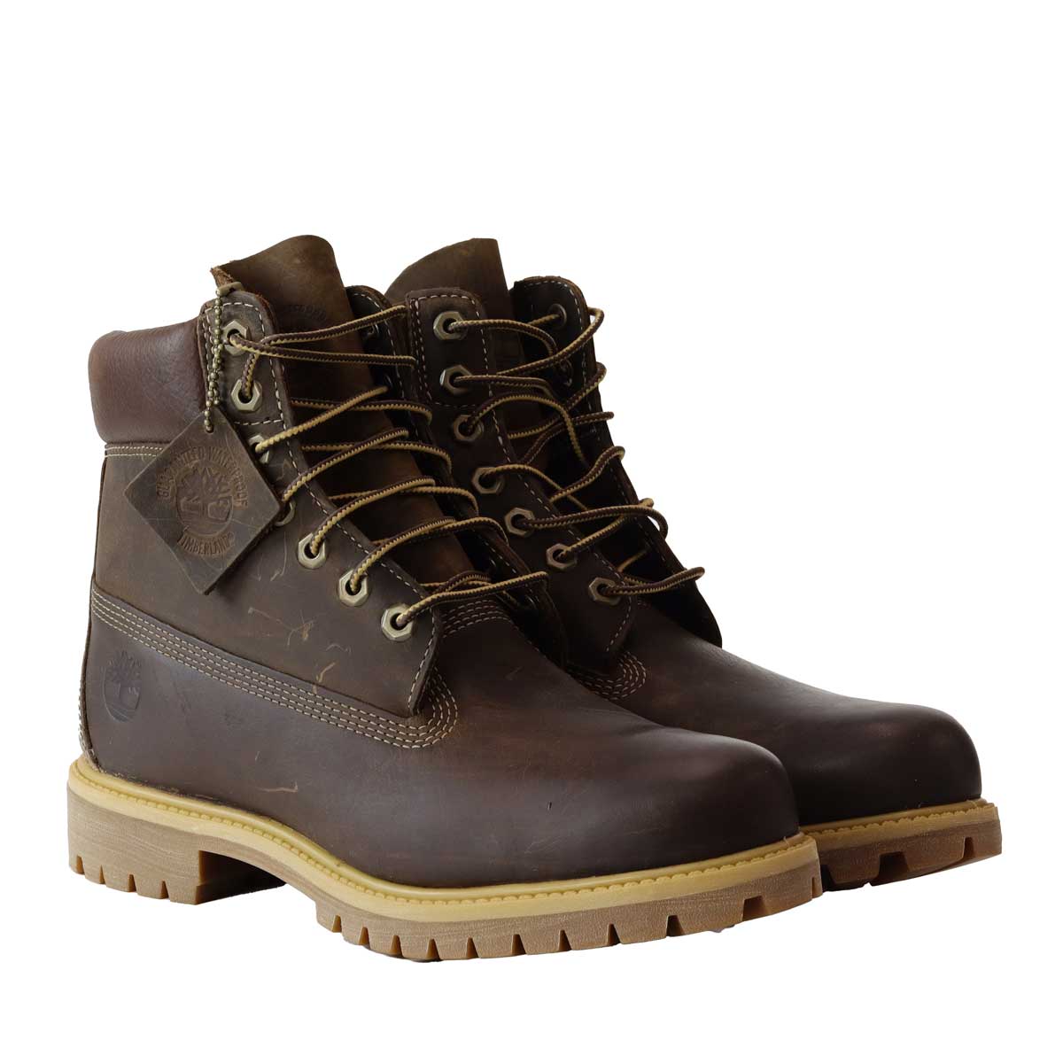 Anfibio PREMIUM 6 LACE marrone di TIMBERLAND in pelle con effetto ingrassato con 7 forti e collarino in pelle imbottita tinta. Fondo carrarmato in gomma.
