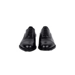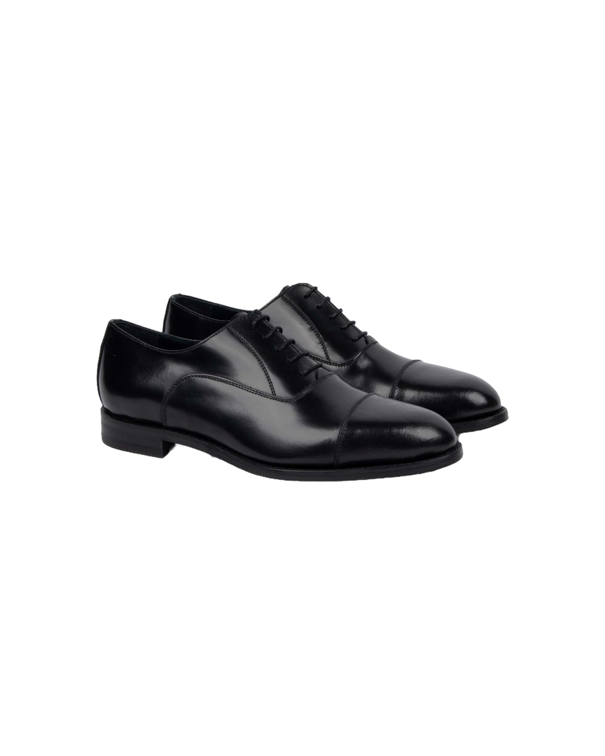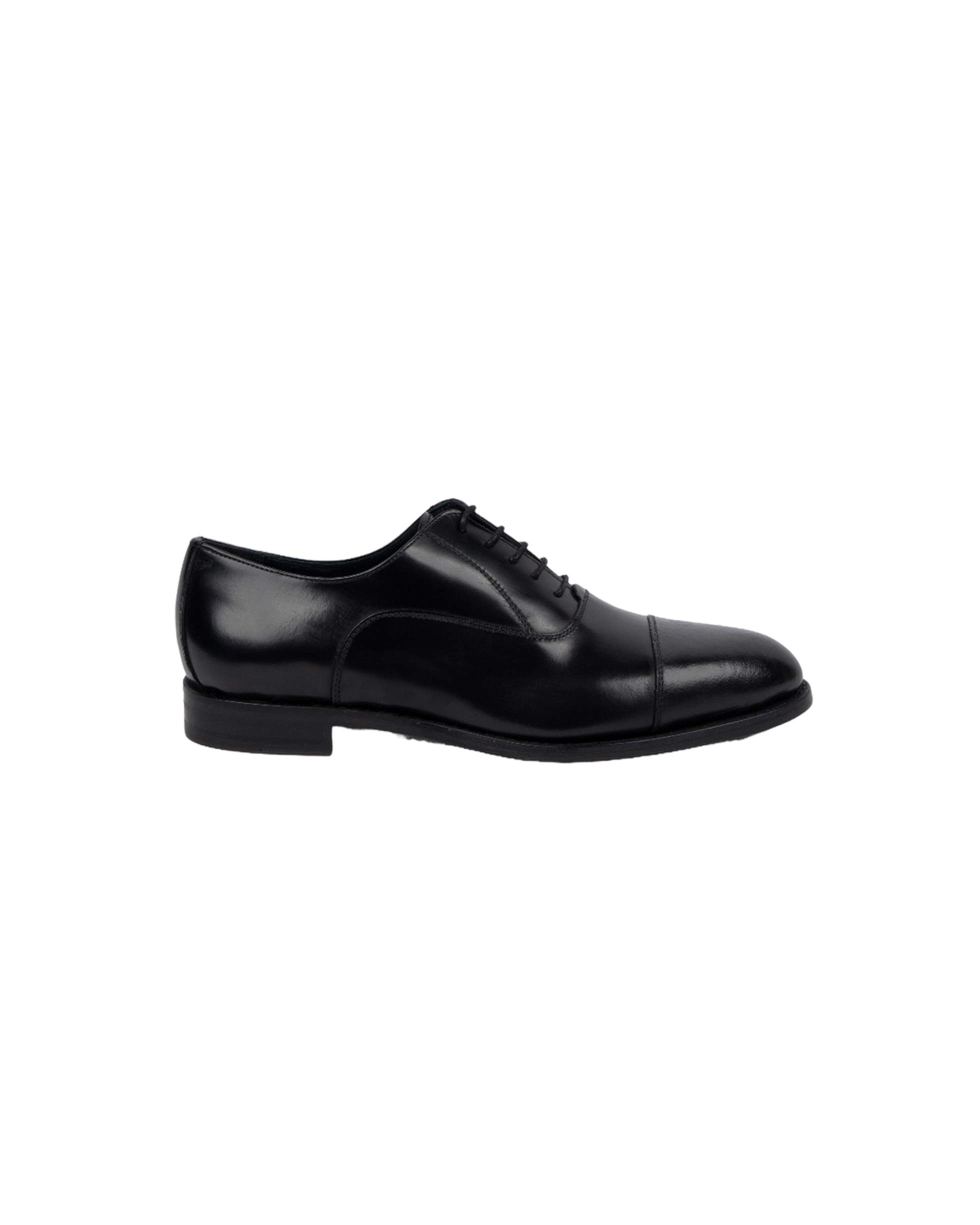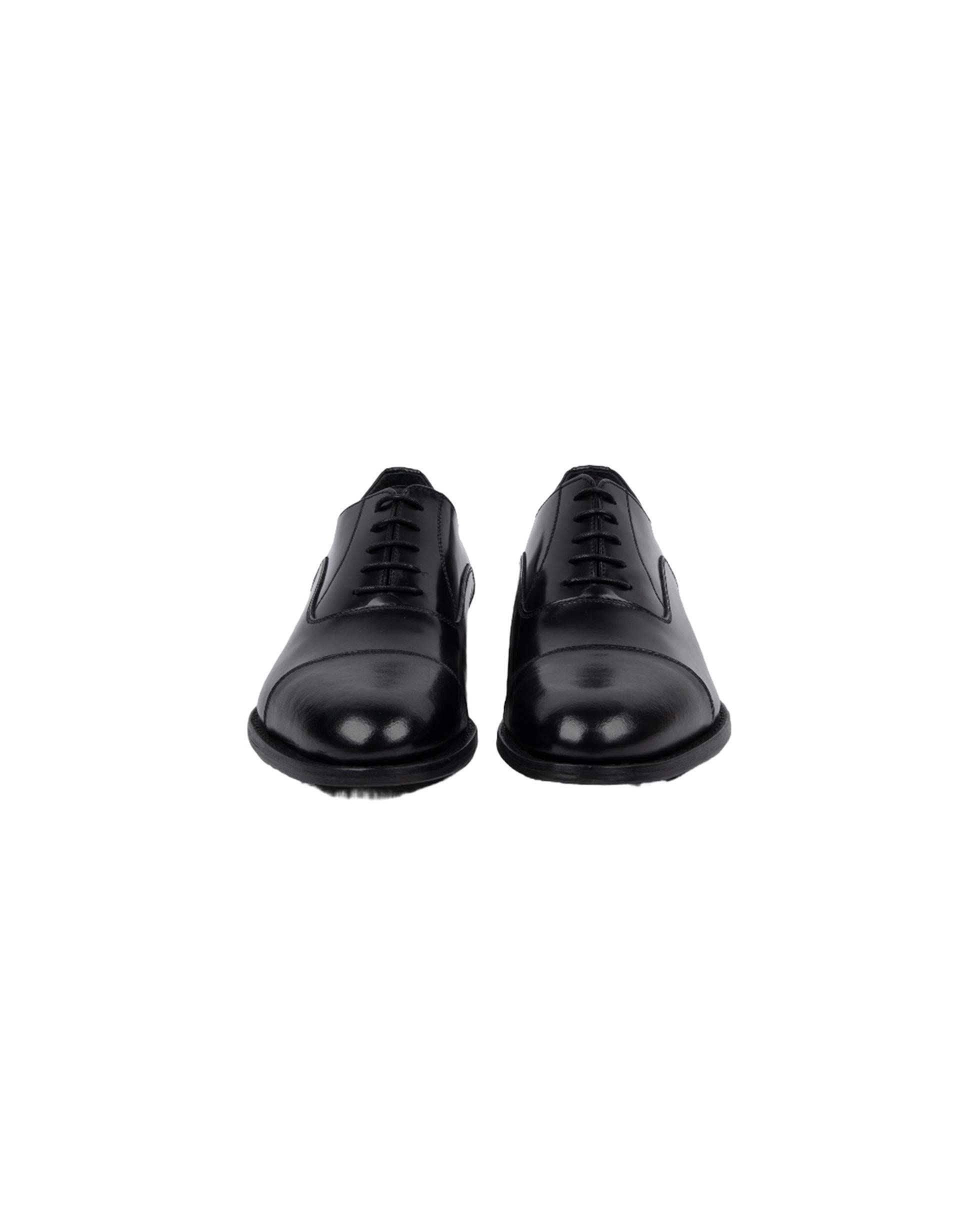 Derby di MARECHIARO in vitello spazzolato nero con fondo in cuoio e mezza puntina antiscivolo.