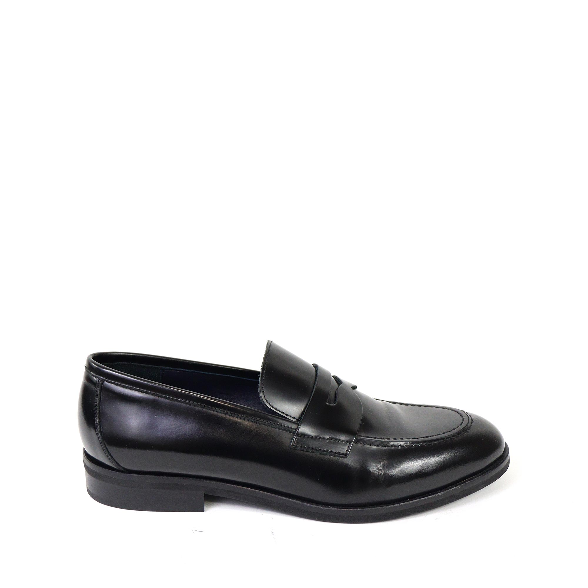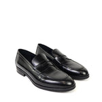 Mocassino nero di MARECHIARO in vitello spazzolato nero con bendina e fondo in gomma.