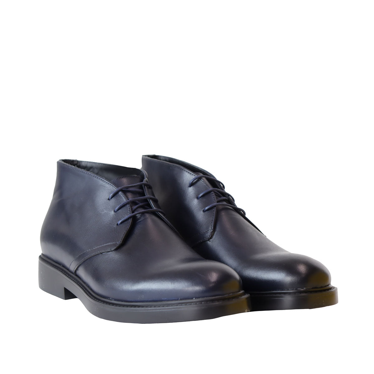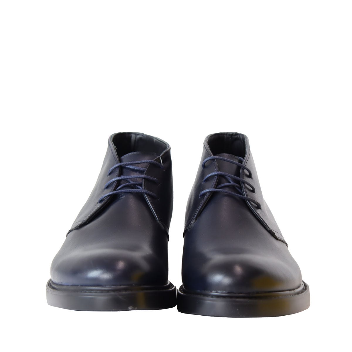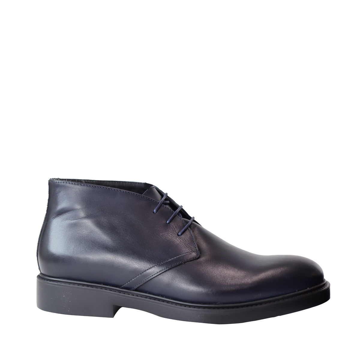 Polacchino blu di KEBO in pelle con altezza midi, 3 fori e fondo in gomma.
