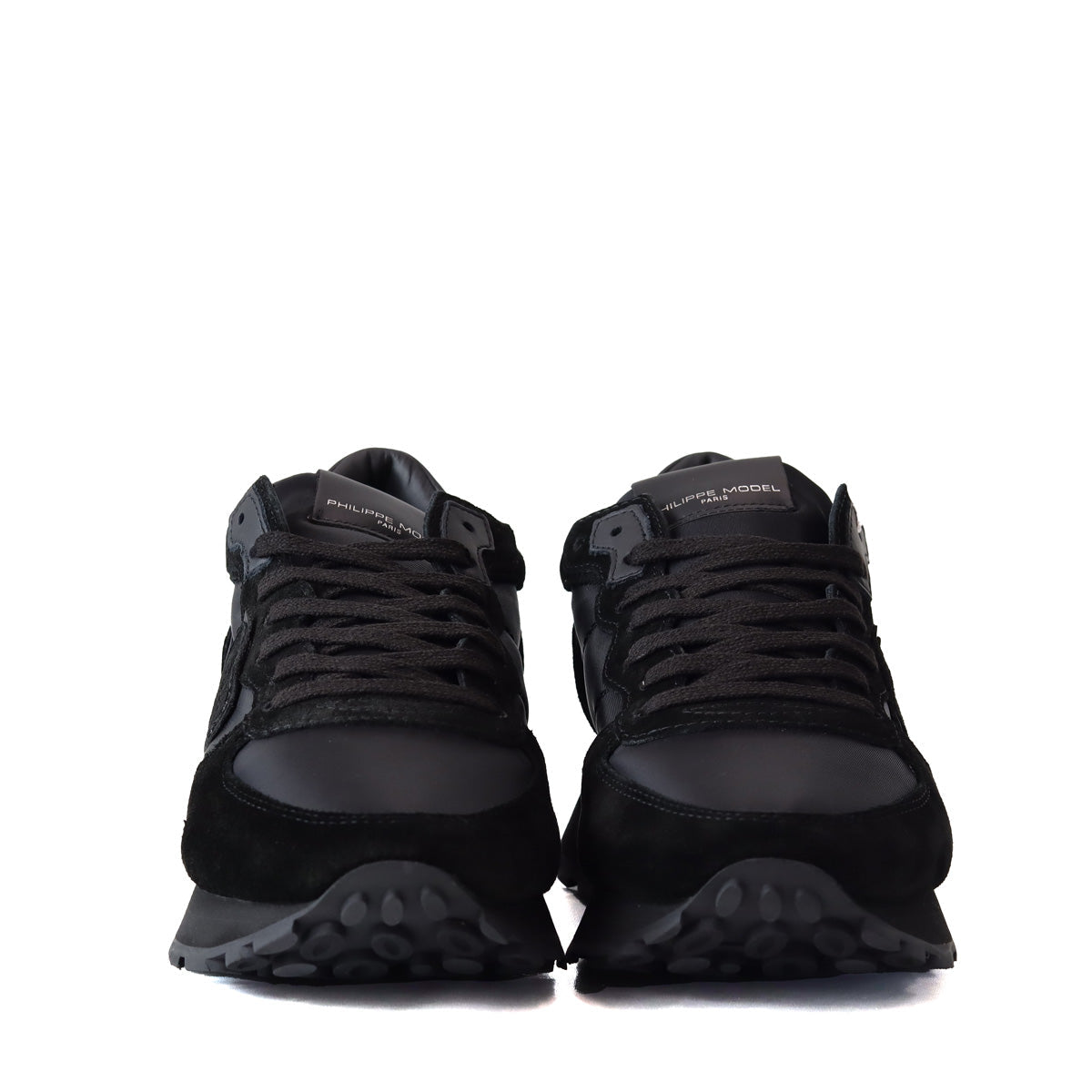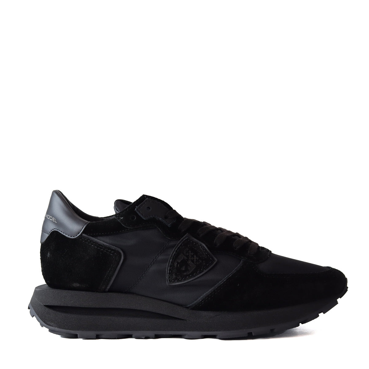 Running TROPEZ HAUTE nera di PHILIPPE MODEL in camoscio con tomaia in nylon in tinta e fondo in gomma in tinta.