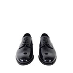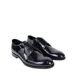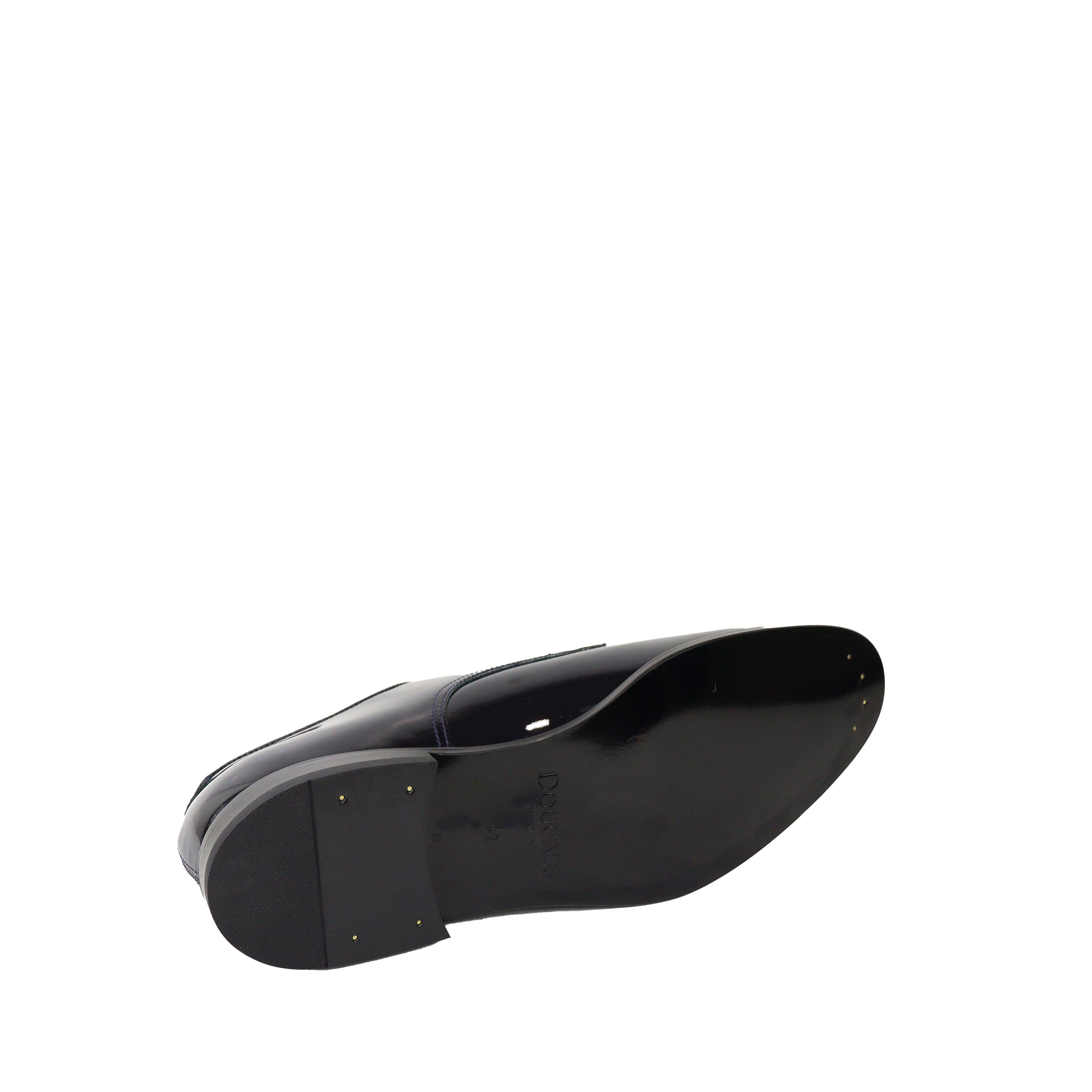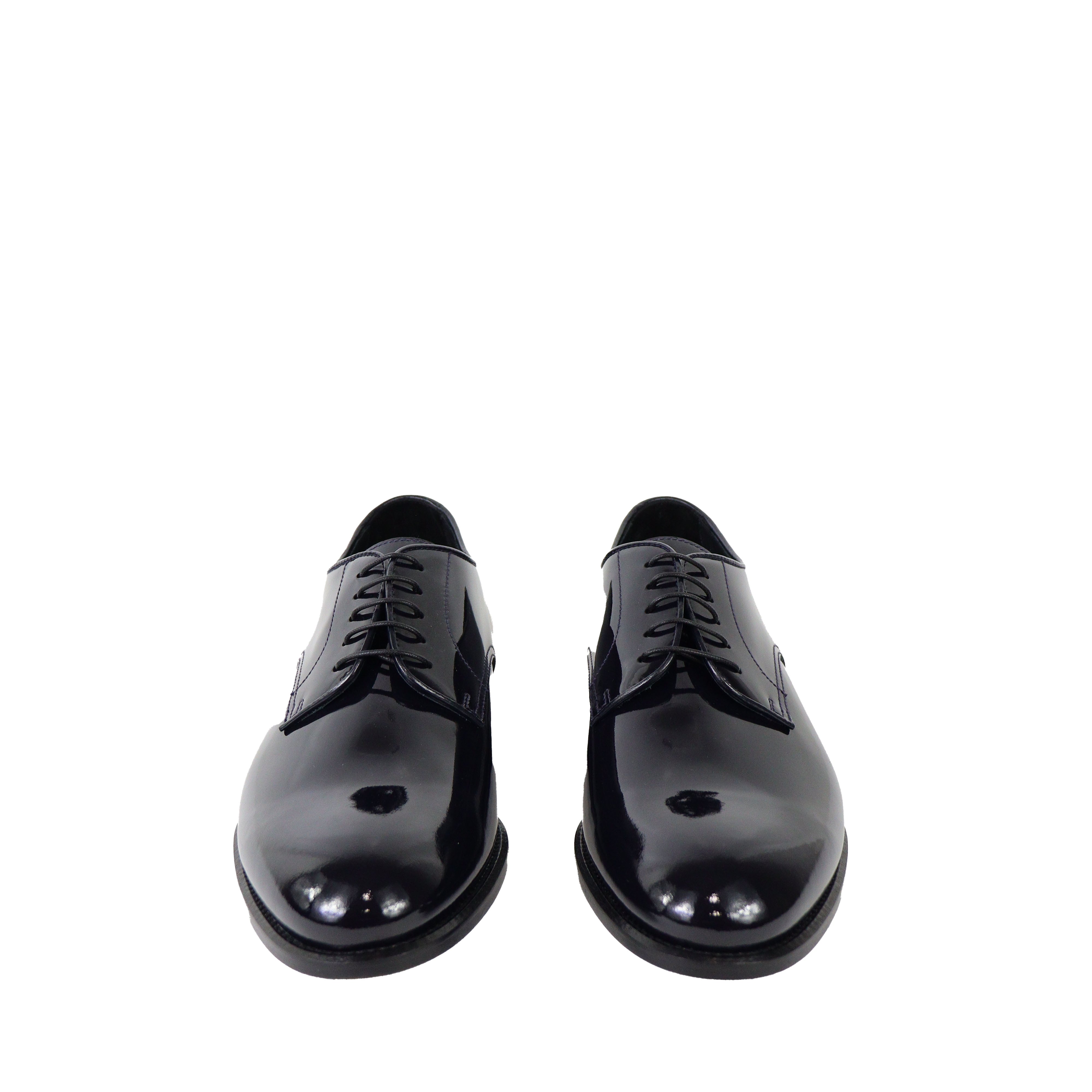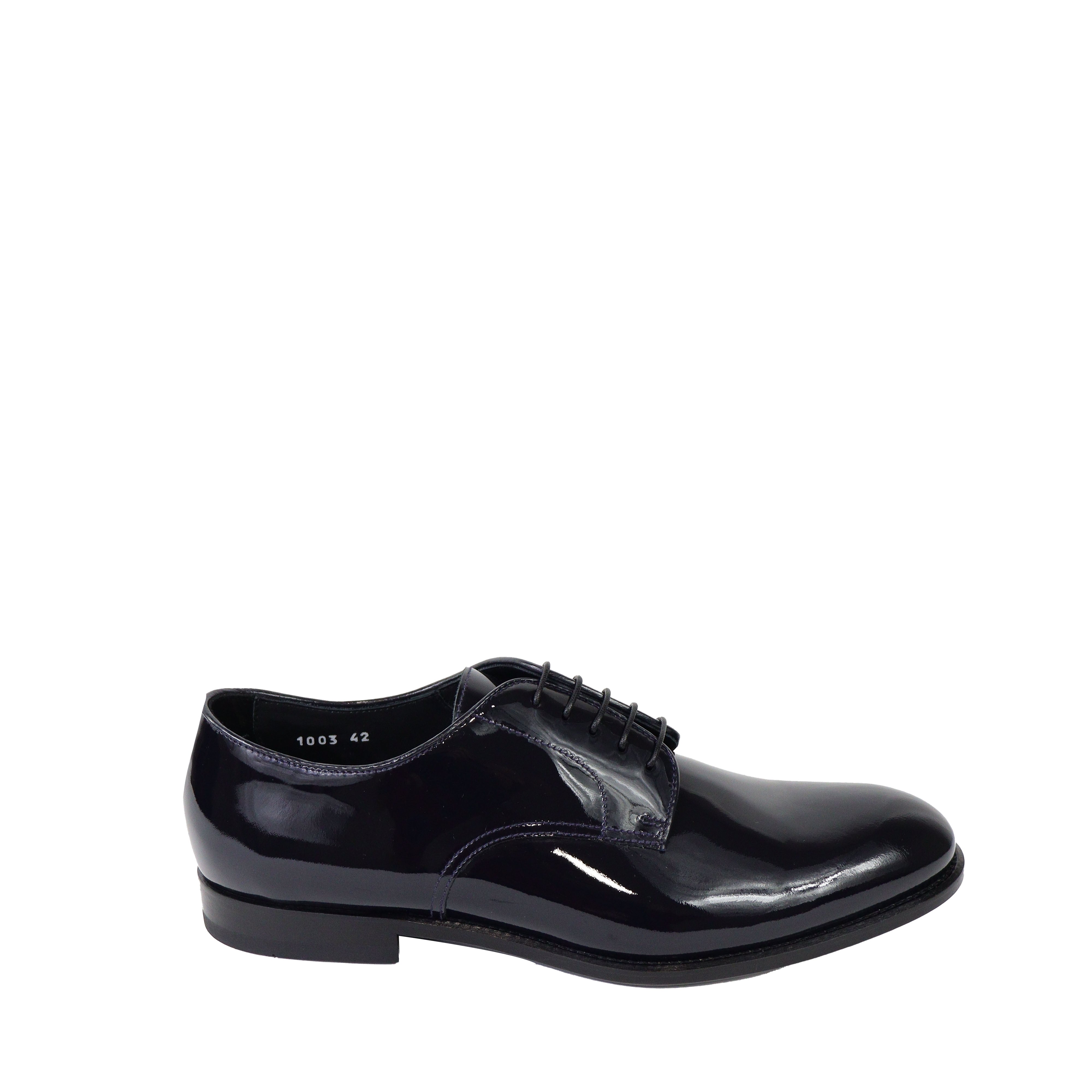 Scarpa derby blu di DOUCALS in vernice con cuciture in tinta, liscia e con fondo in cuoio nero.
