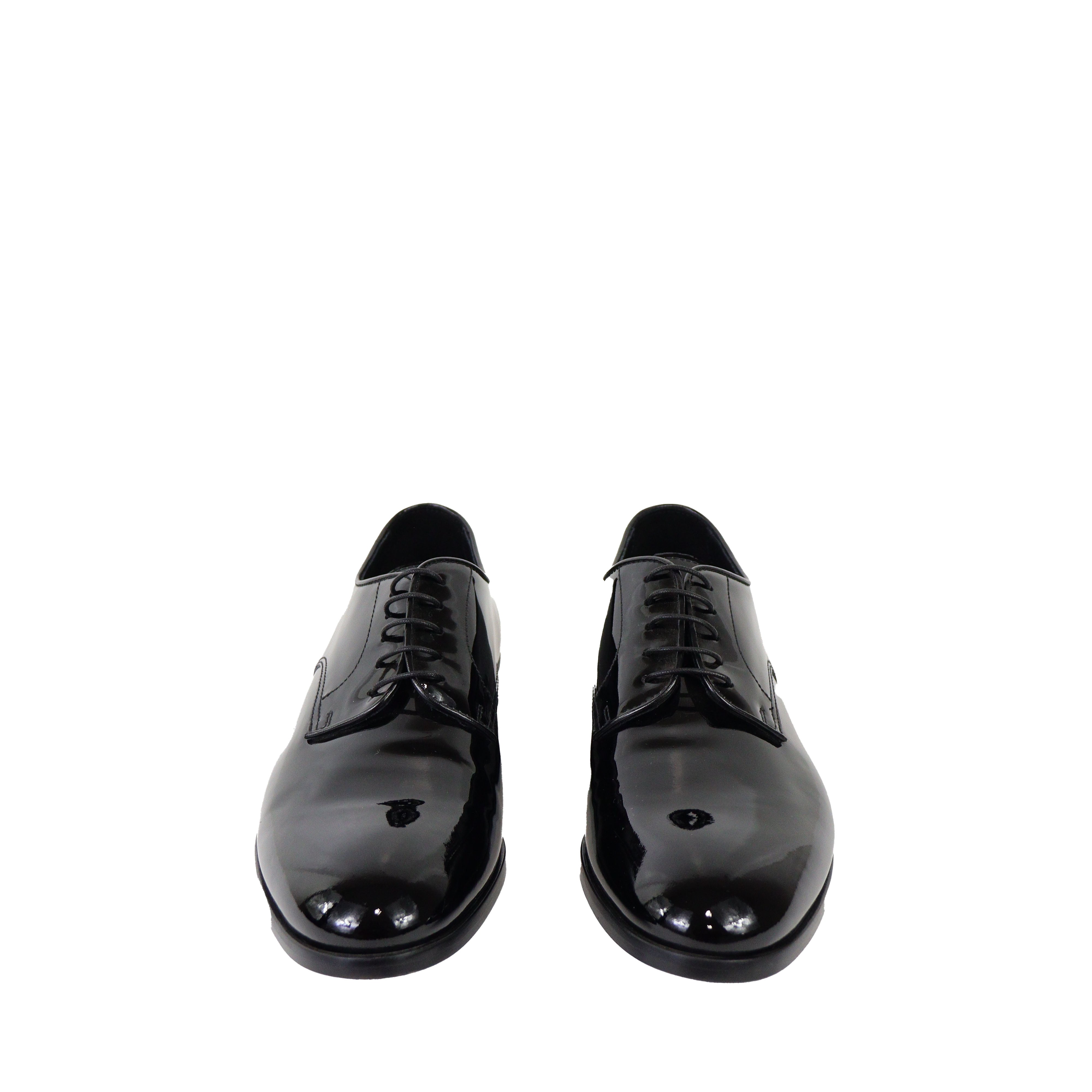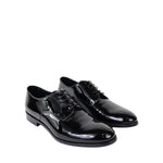 Scarpa derby nera di DOUCALS in vernice con cuciture in tinta, liscia e con fondo in cuoio nero.
