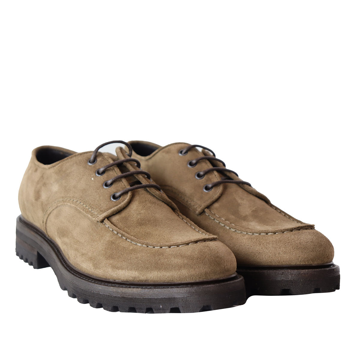 Stringata beige di JEROLD WILTON in camoscio con 4 forti, cuciture in leggero contrasto. Fondo carrarmato in gomma.