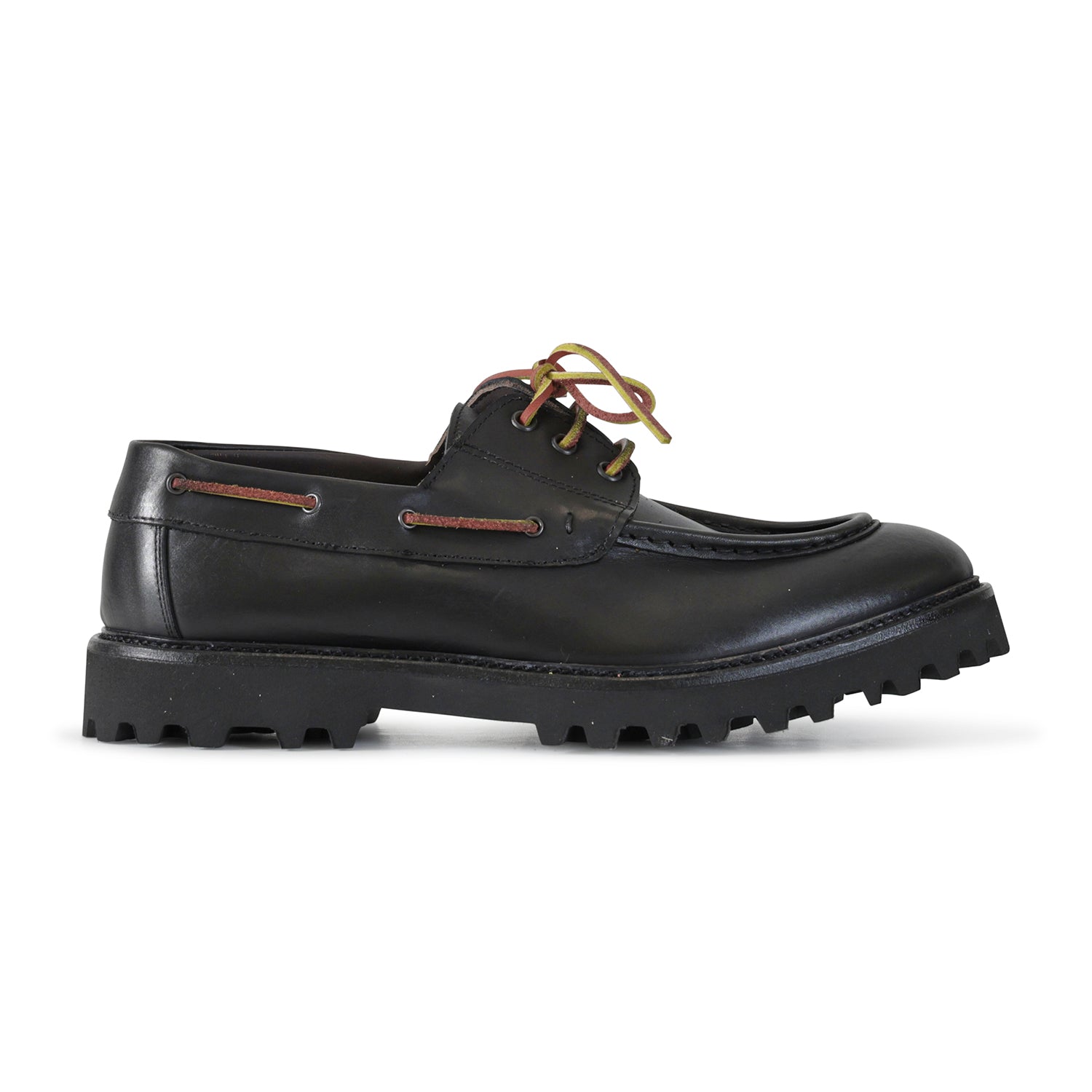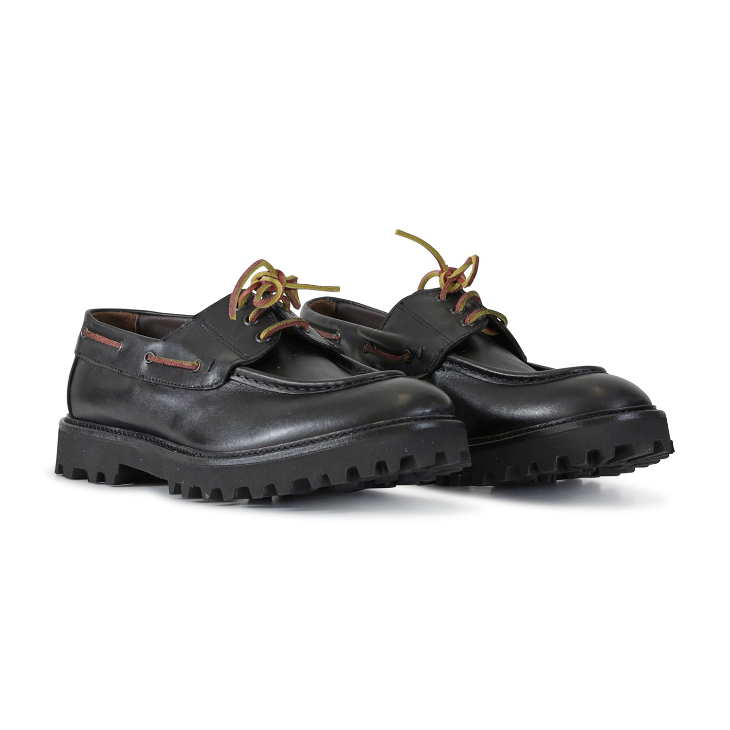 Stringata nera di RENNELLA in pelle con fondo in gomma rocciatore, 3 fori, cordolo e modello barca