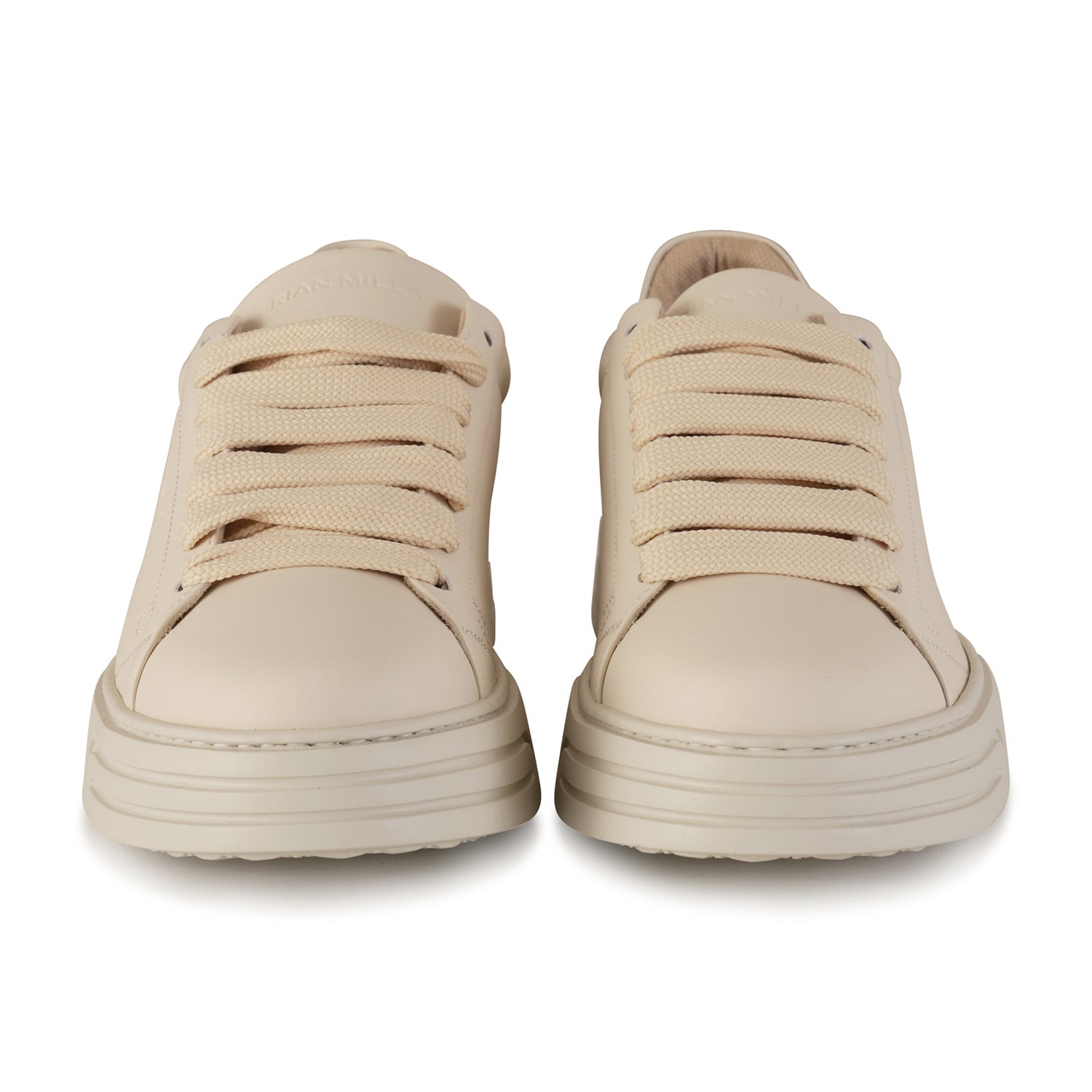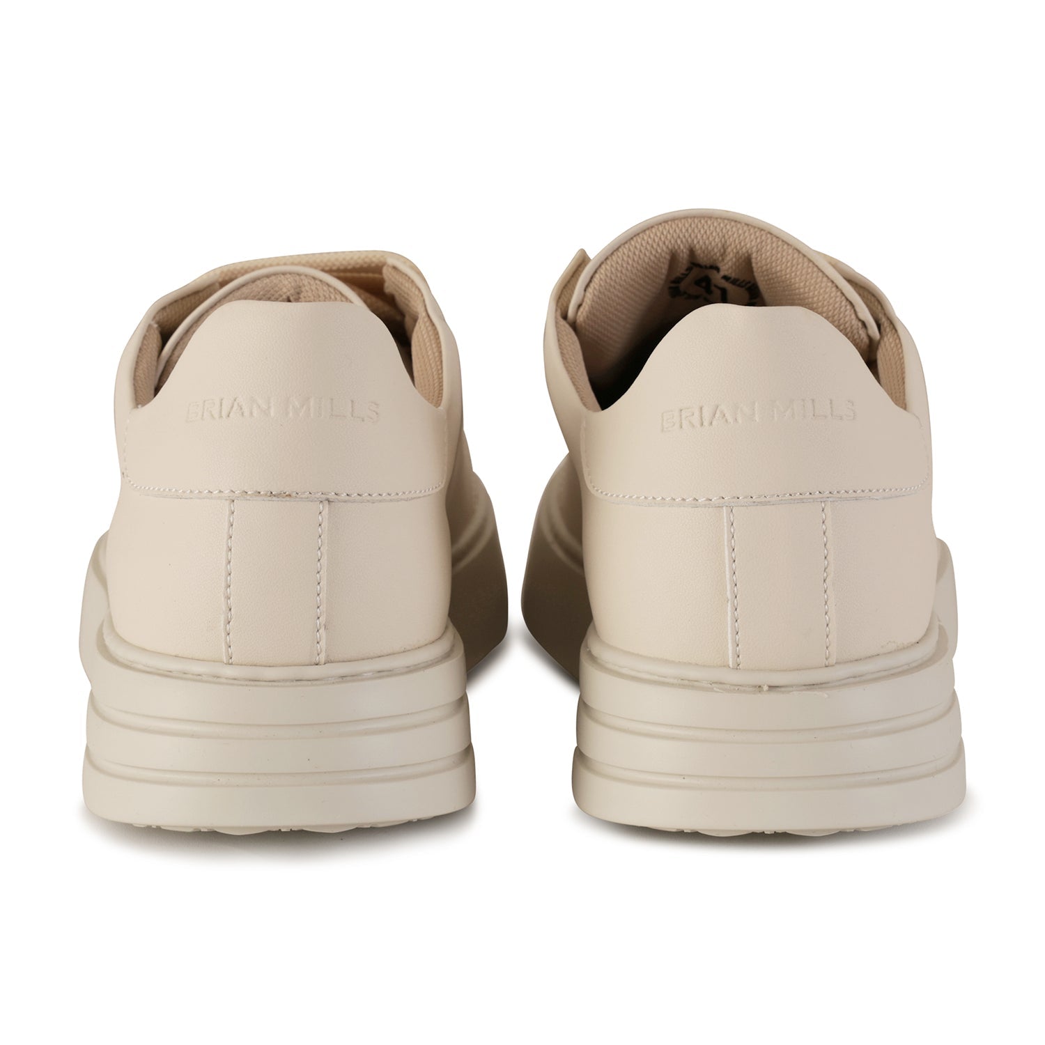 Sneakers beige di BRIAN MILLS in pelle con logo a fuoco laterale e sul tallone, punta tonda e fondo in gomma in tinta.