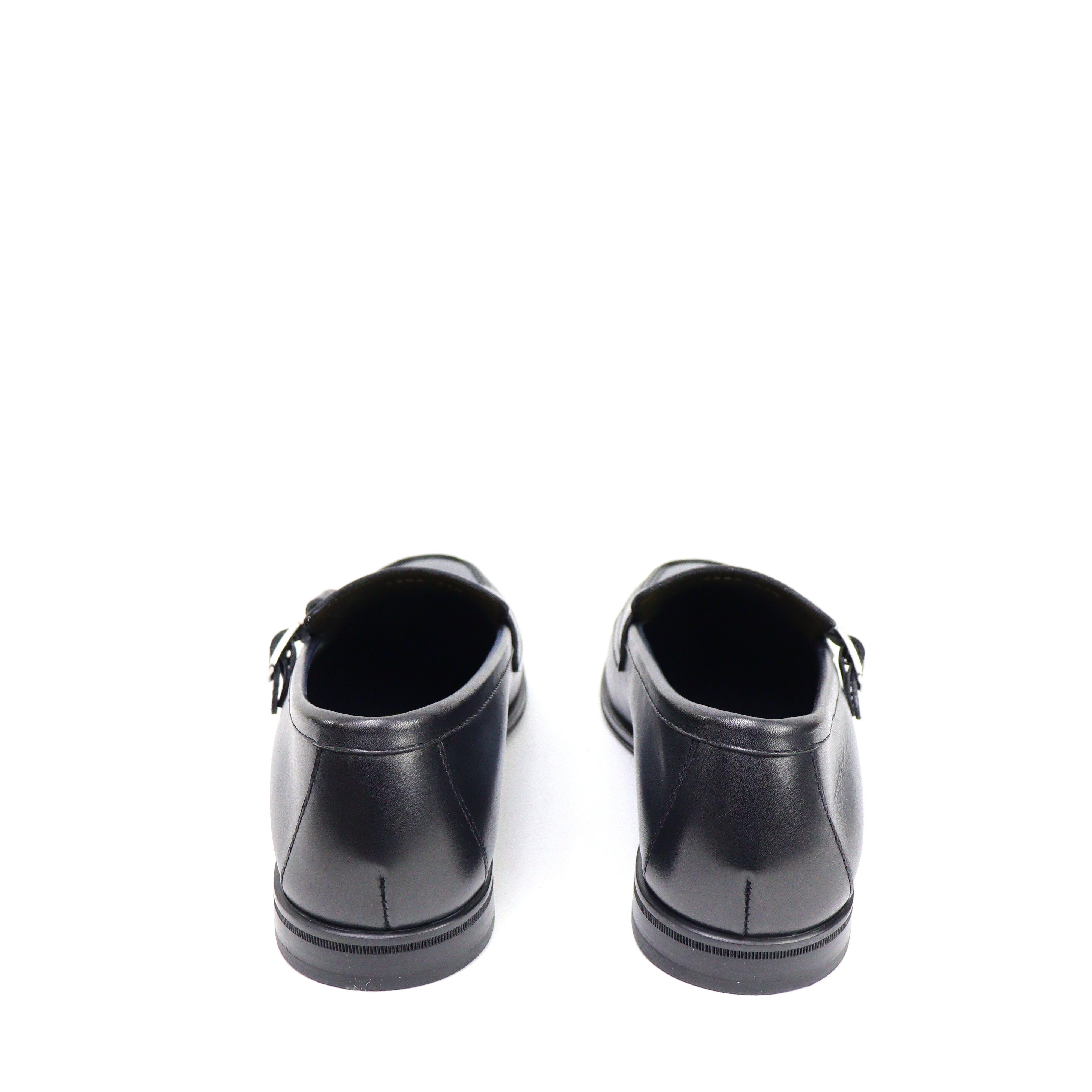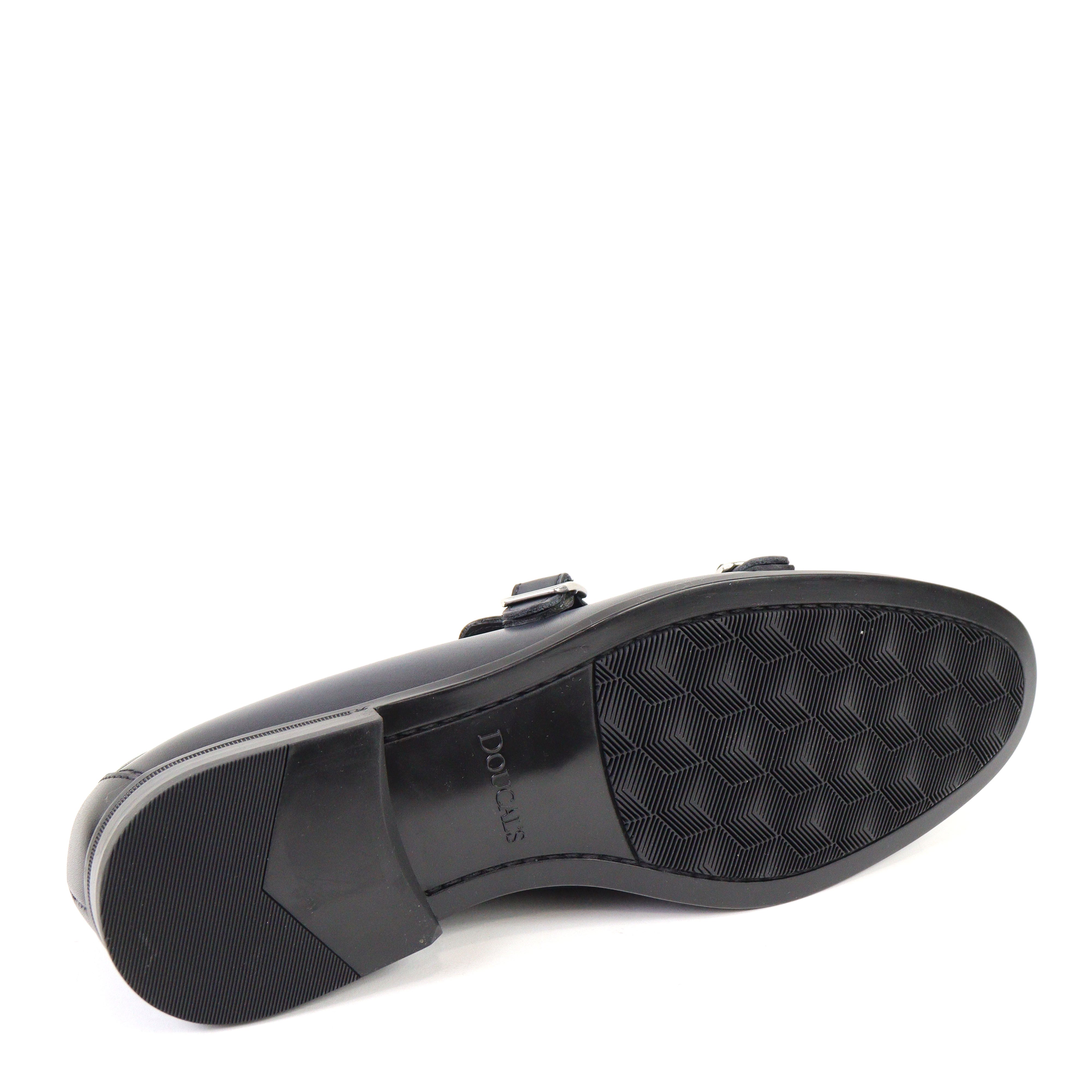 Mocassino blu di DOUCALS in pelle con sfumatura scura in punta, doppia fibbia, cucitura a vaschetta. Fondo in gomma.