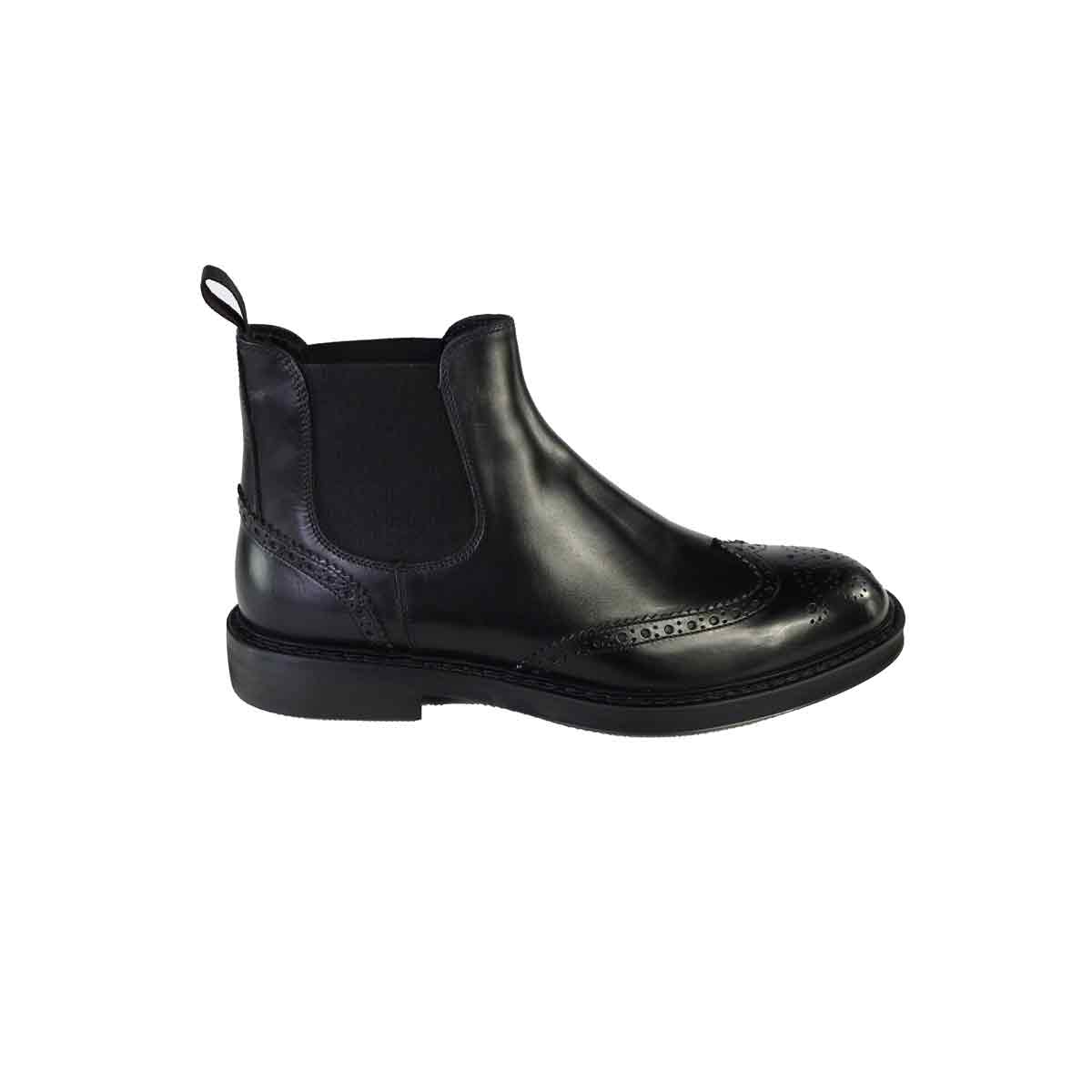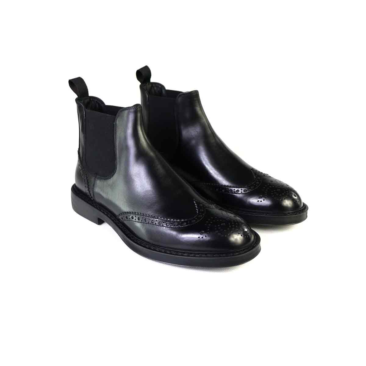 Stivaletto beatles con impuntura duilio di Jerold Wilton realizzata in pelle nera con elastico laterale e fondo in gomma