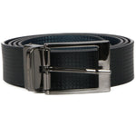 Cintura nera di MOMO DESIGN in pelle effetto squamato con fibbia in acciaio con logo su passante.