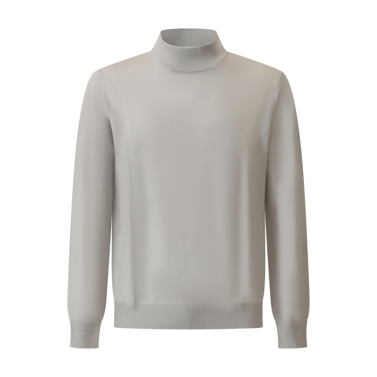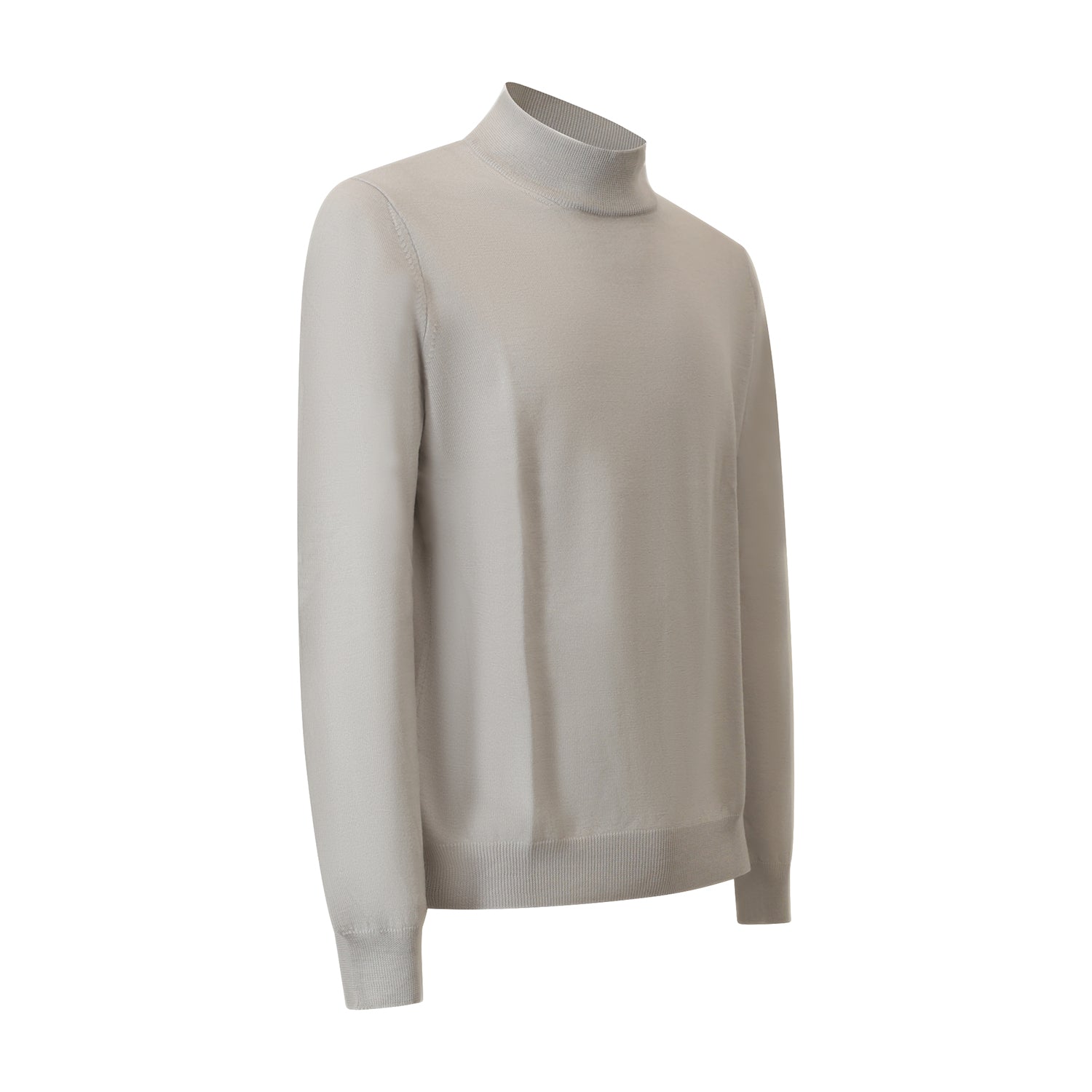 Magia grigia chiaro di GRAN SASSO X FEDELE in lana merinos con collo lupetto, bordi e polsi a costine.