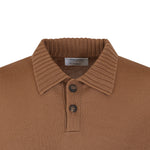 Polo tennis caramello di GRAN SASSO X FEDELE in lana athleisure con collo ciclista a coste, bordi e polsi a costine.