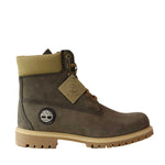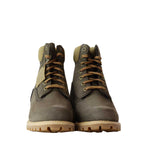 Anfibio PREMIUM 6 LACE fango di TIMBERLAND in pelle con effetto nabuk con 7 forti e collarino in tessuto imbottito beige. Fondo carrarmato in gomma.