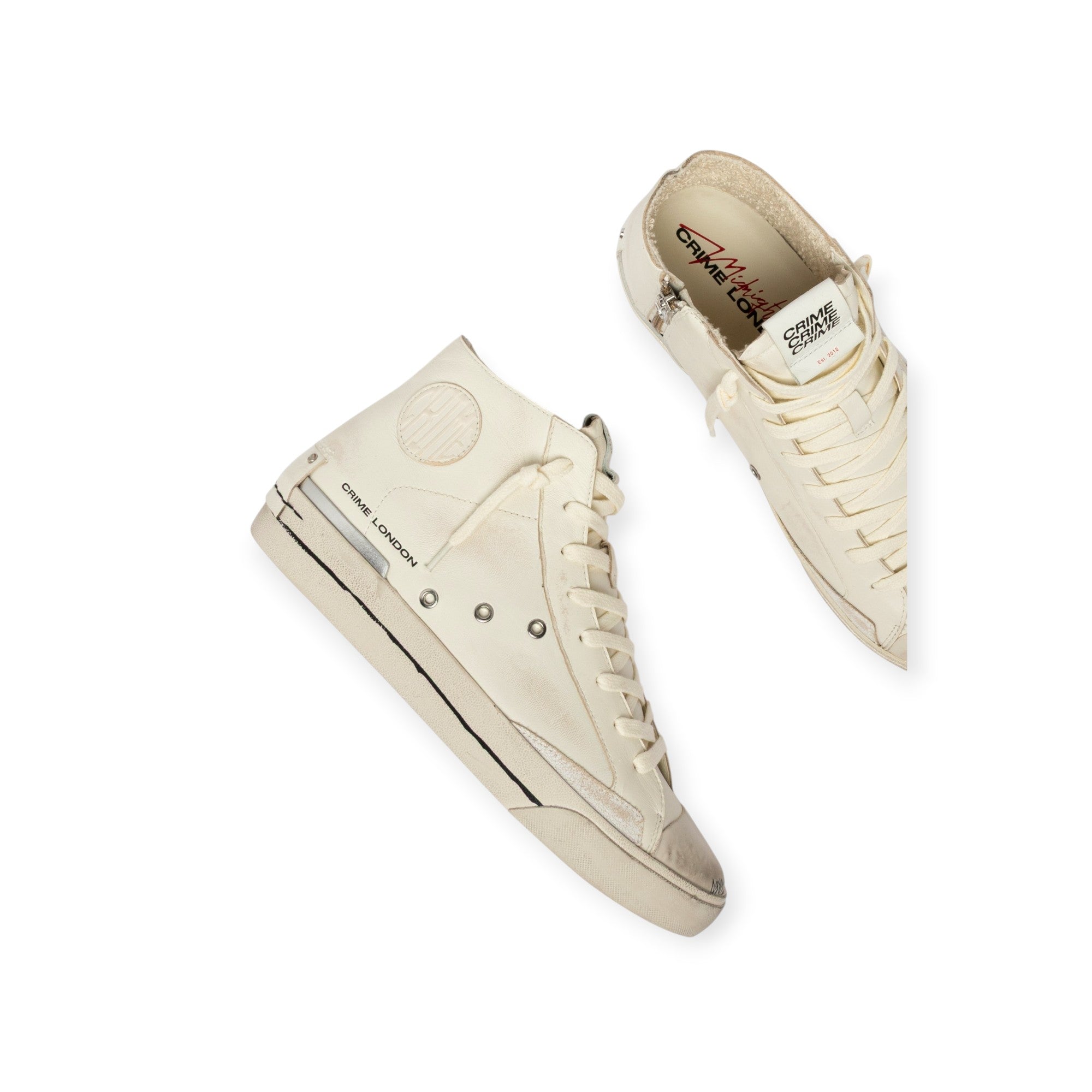 Sneakers RECUT HIGH bianca di CRIME in pelle con punta in gomma, zip interna e logo ball laterale.