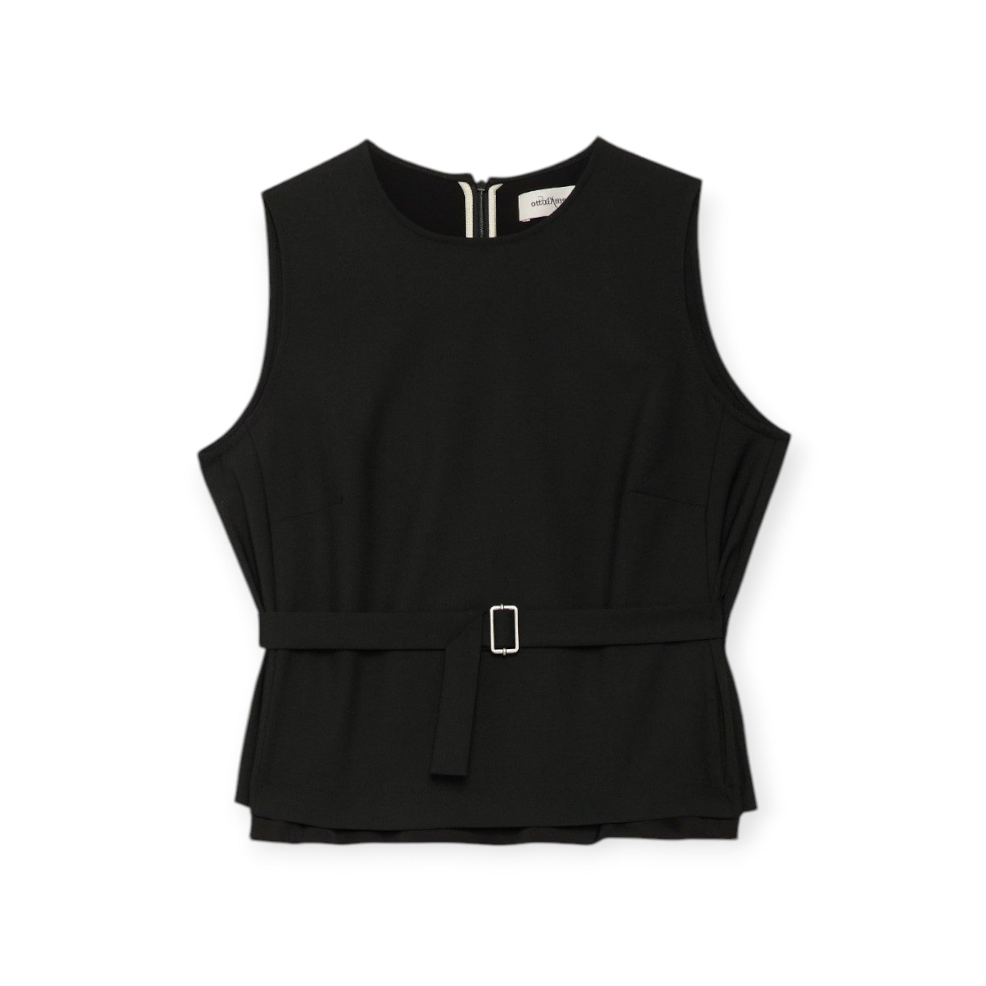 Top nero di OTTOD'AME in misto lana con cintura e fibbia gioiello.