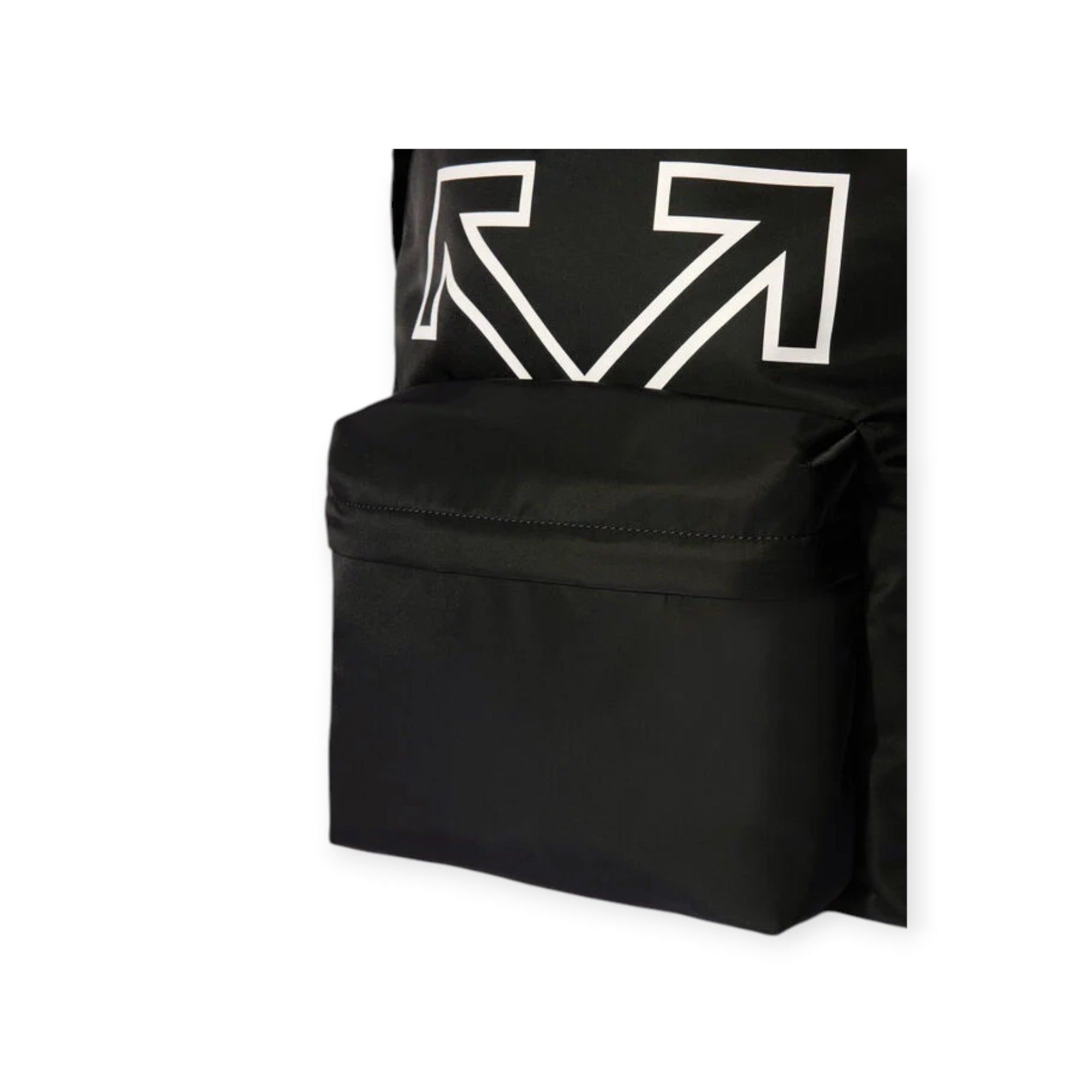 Zaino Heritage nero di OFF WHITE in nylon con stampa logo in bianco, una tasca anteriore, chiusura con zip, spalline regolabili. Misure 29x43x15cm.